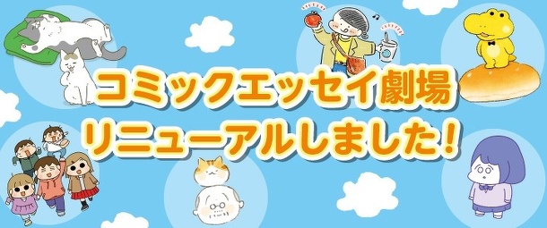 いつもコミックエッセイ劇場をご覧いただきありがとうございます。 このたび、コミックエッセイ劇場はサイトリニューアルをしました。 といっても、基本的な内容や使い方は同じで、これまで通りどの作品もすべて無料でお楽しみいただけます。 新しい作品の連載はもちろん、コミックエッセイプチ大賞へのご応募に役立つヒントなど、より一層充実したサイトにしていきますので、今後ともどうぞよろしくお願いいたします。 KADOKAWAコミックエッセイ編集部一同