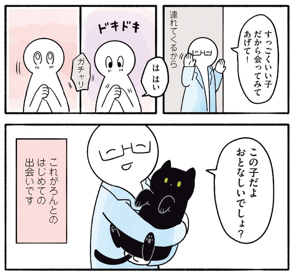 動物病院で「すっごくいい子だから会ってみてあげて!」と先生が連れてきたその子がろん(本名:くろあん)でした。
