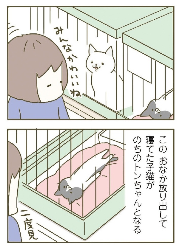もともと犬派だった旦那さんから「猫飼おうか?」と提案を受けた卵山さんは即座に保護猫譲渡会に参加を決意。その保護猫譲渡会で出会った幼き日のトンちゃんは意外な姿をしていて…?