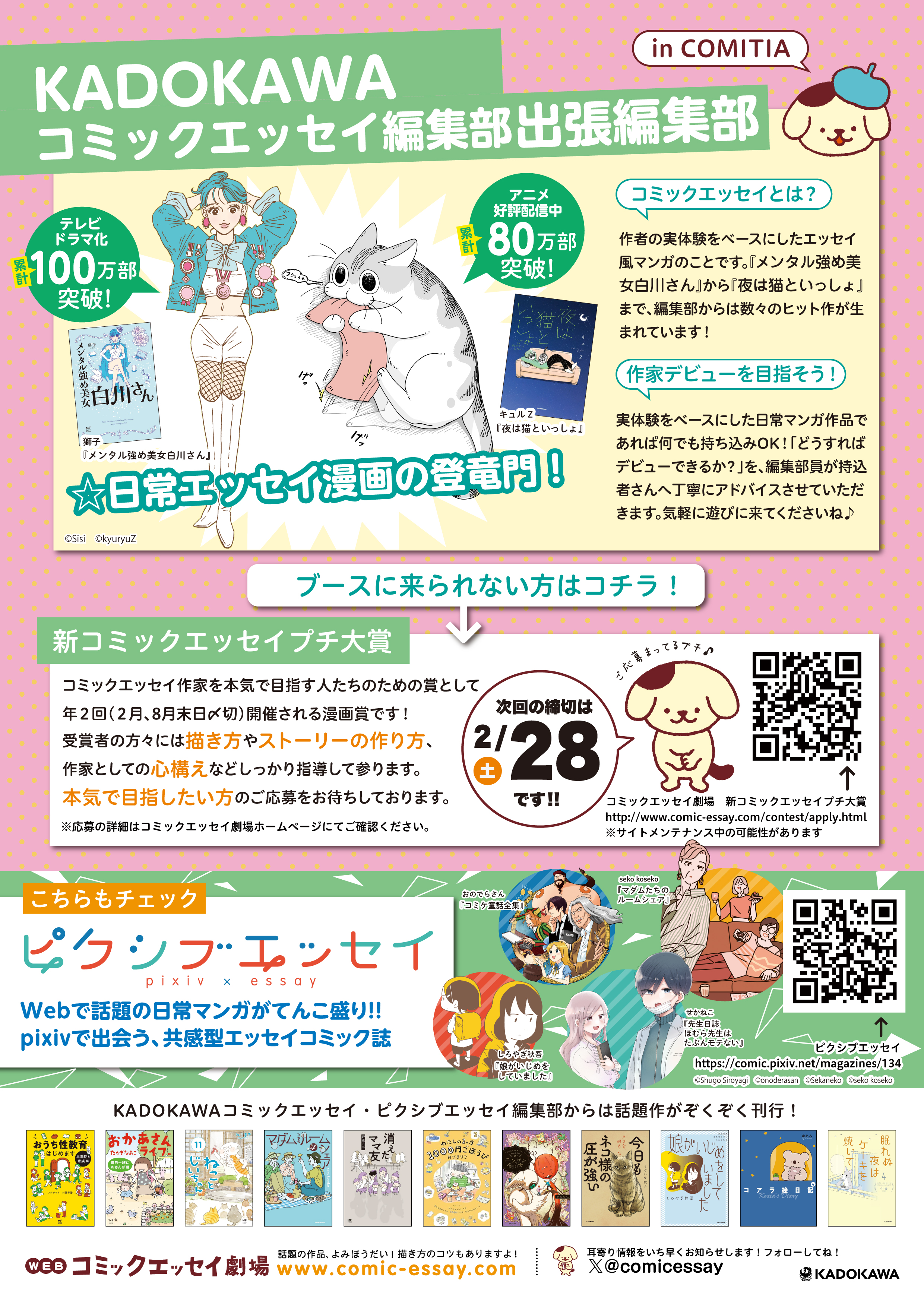 KADOKAWAコミックエッセイ編集部が11月24日開催 COMITIA154「出張マンガ編集部」に出展する事が決定しました。