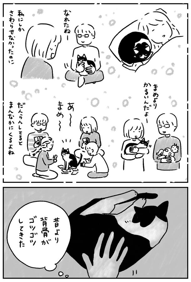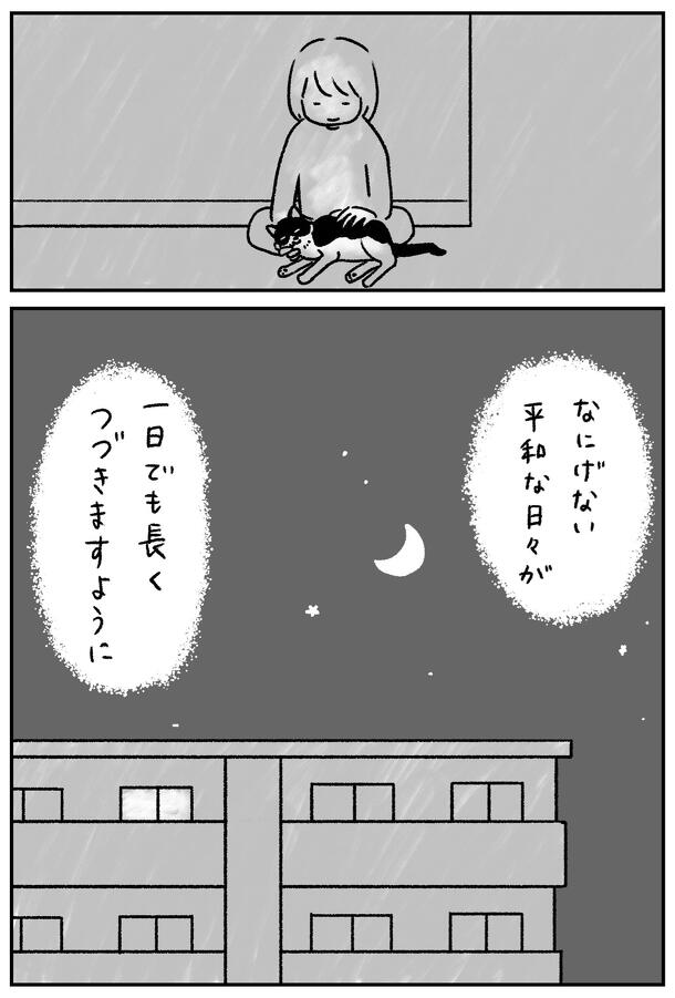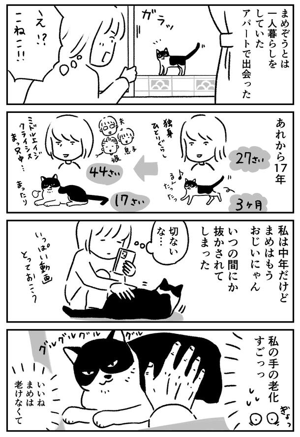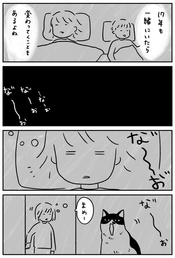 【受賞者のコメント】 いつか終わる日が来ることが怖くて猫漫画は描けないと思っていましたが、まめぞうが17歳になり、描き留めておきたいという気持ちが勝りました。 この度は素晴らしい賞をありがとうございました。 【AKRさん講評】 一つ一つの描写に確かな生活感や息遣いがあって、作者さんとまめぞうとご家族とのこれまでの日々の温かみと、まめぞうへの愛情が伝わってきました。私も長年一緒に暮らしている猫がいるので、最初から最後まで「わかる…わかる…」と頷きながら読ませていただきました。猫と暮すひとの胸にそっと仕舞われている幸福とすこしの切なさと共鳴してくれるような、すてきな作品です。