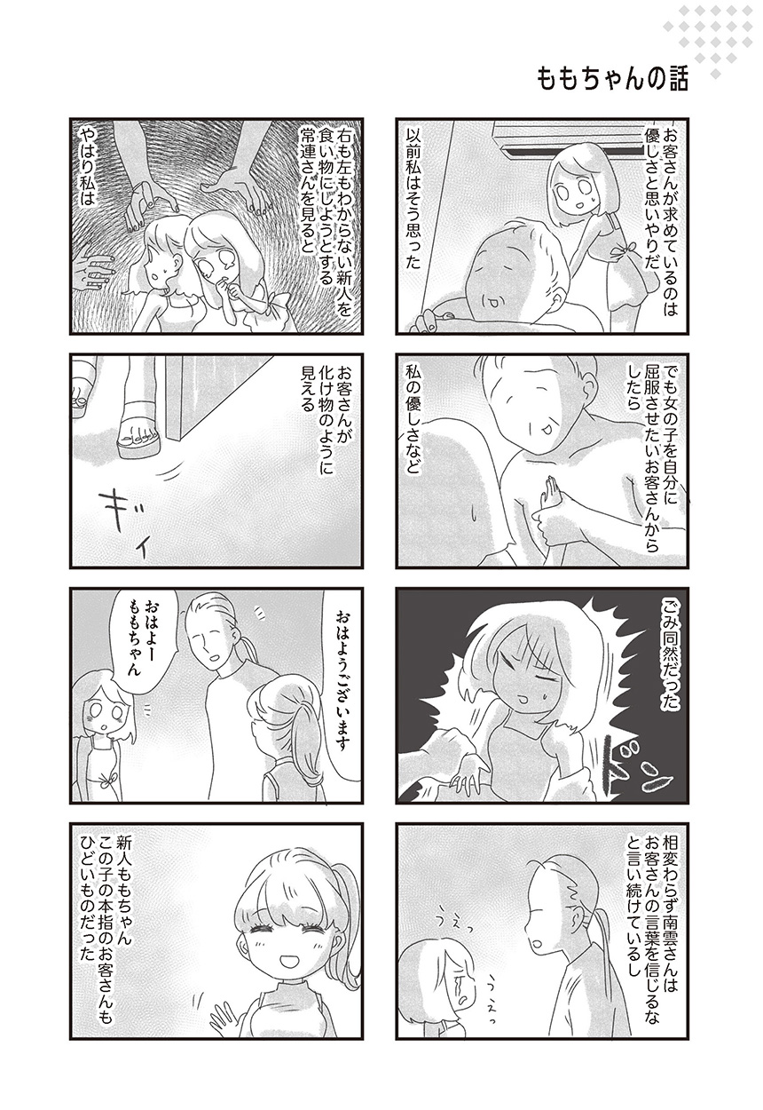 そのグレーな業態の中で繰り広げられる、男性客との駆け引きやトラブル、同僚との生々しい会話を、実際にメンズエステ嬢として働く筆者が圧倒的リアルかつ繊細に描くコミックエッセイ。