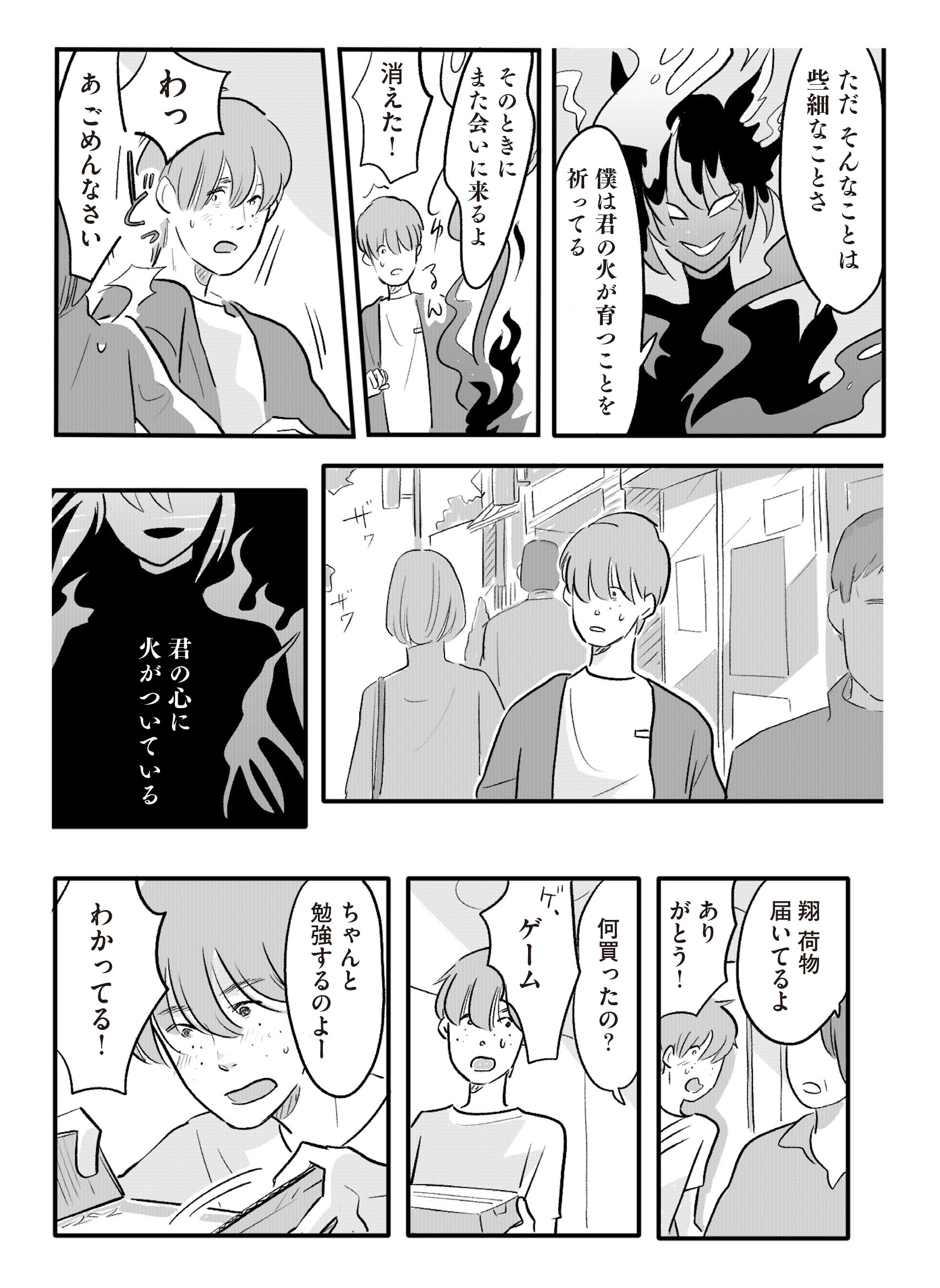 私の心を閉じ込めていたのは”無自覚の私”――夫婦のすれ違い、男女の恋愛に違和感を持つ女子高生、60歳からの新しい恋、男子高校生のメイクなど「常識」から外れてしまうから、大切な人をこれ以上傷つけないために私が我慢すれば…と、自分の気持ちに蓋をしてきた主人公たち。そこへ、人間の心に灯る“火”を食べて生きる妖怪・焔(ほむら)が突然現れては、心の中に灯る小さな火を見つけ、変化を生み出していく8つの物語。