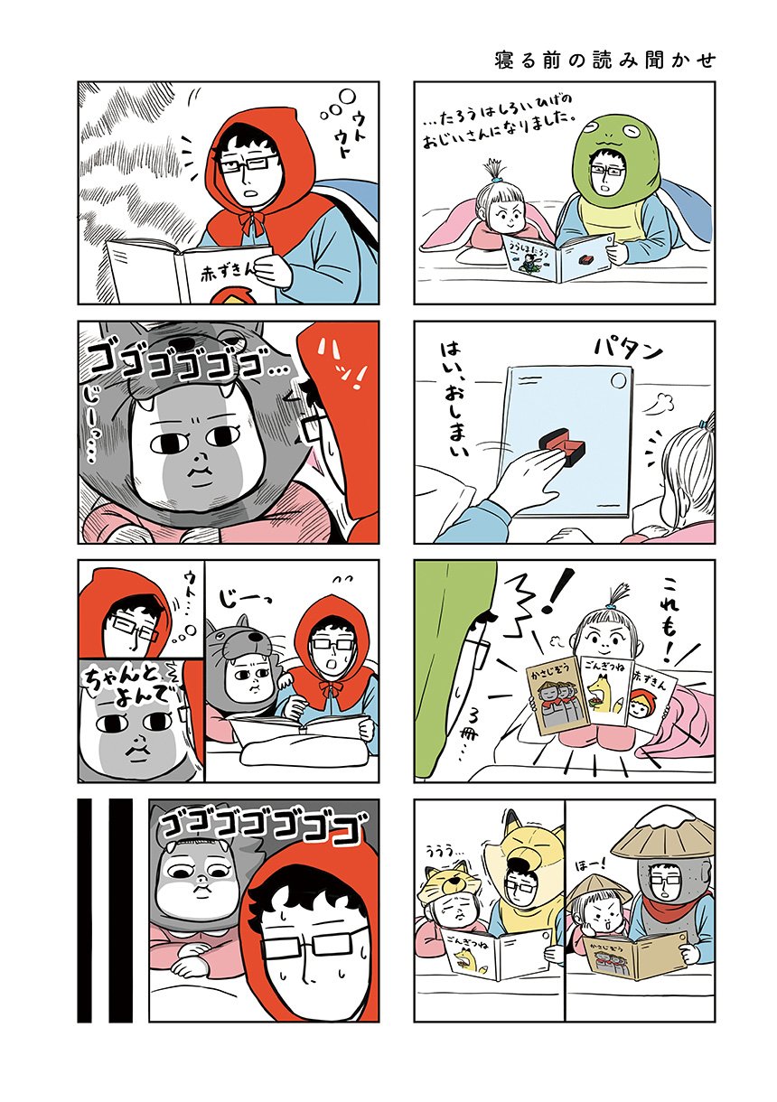 無口だけれどユーモアがあって、着ぐるみを着てボケることが大好きなパパさん。そこに鋭いつっこみを入れるママさん。おてんばでパパと一緒に着ぐるみを着るのが大好きなムスメちゃん。ちょっとおかしな3人家族が繰り広げる非日常な日常をお届け!描きおろしでは、「パパさんとママさんの出会い」「ムスメちゃんが笑った日」など、長編の漫画を50ページ以上収録。