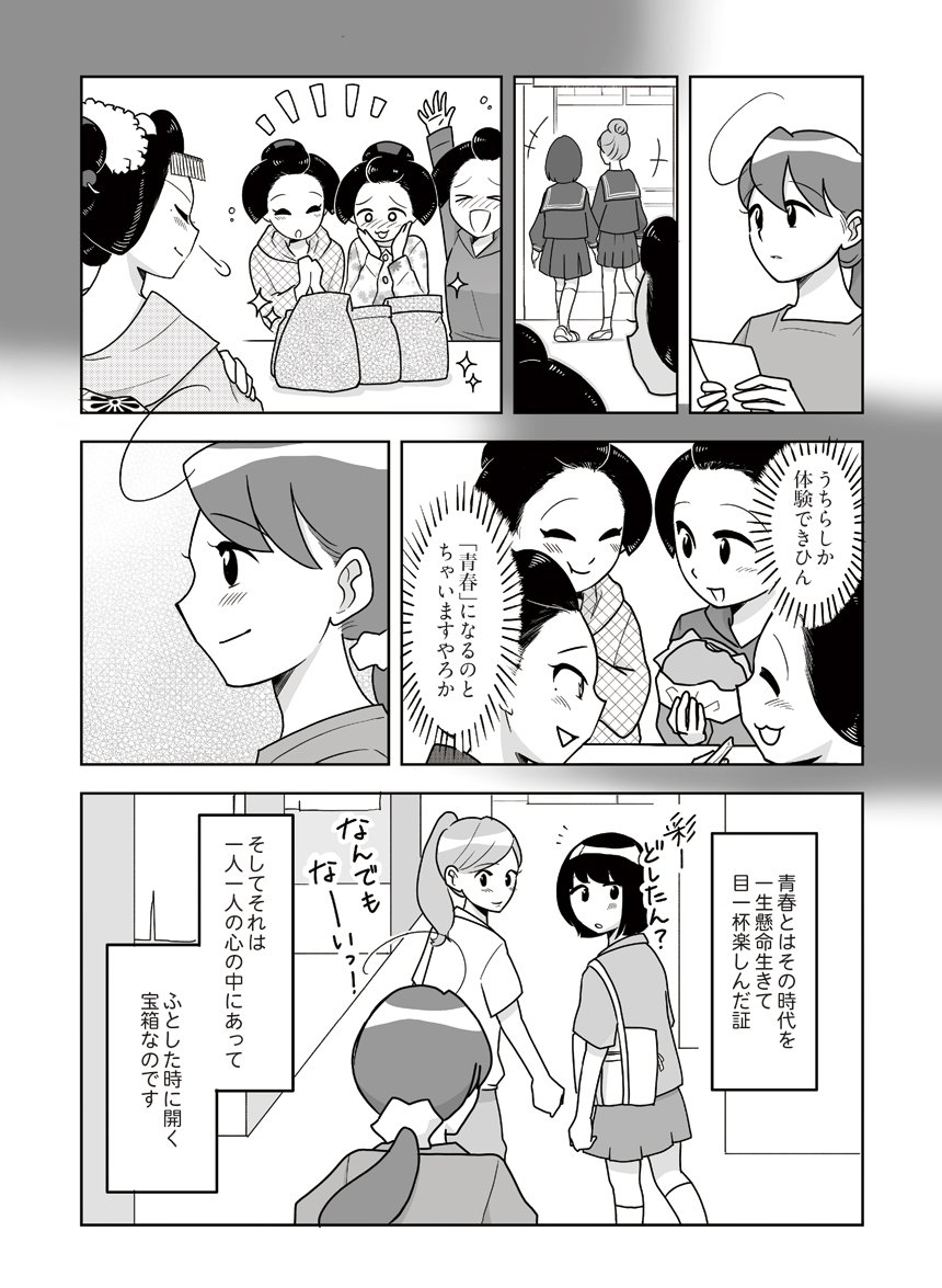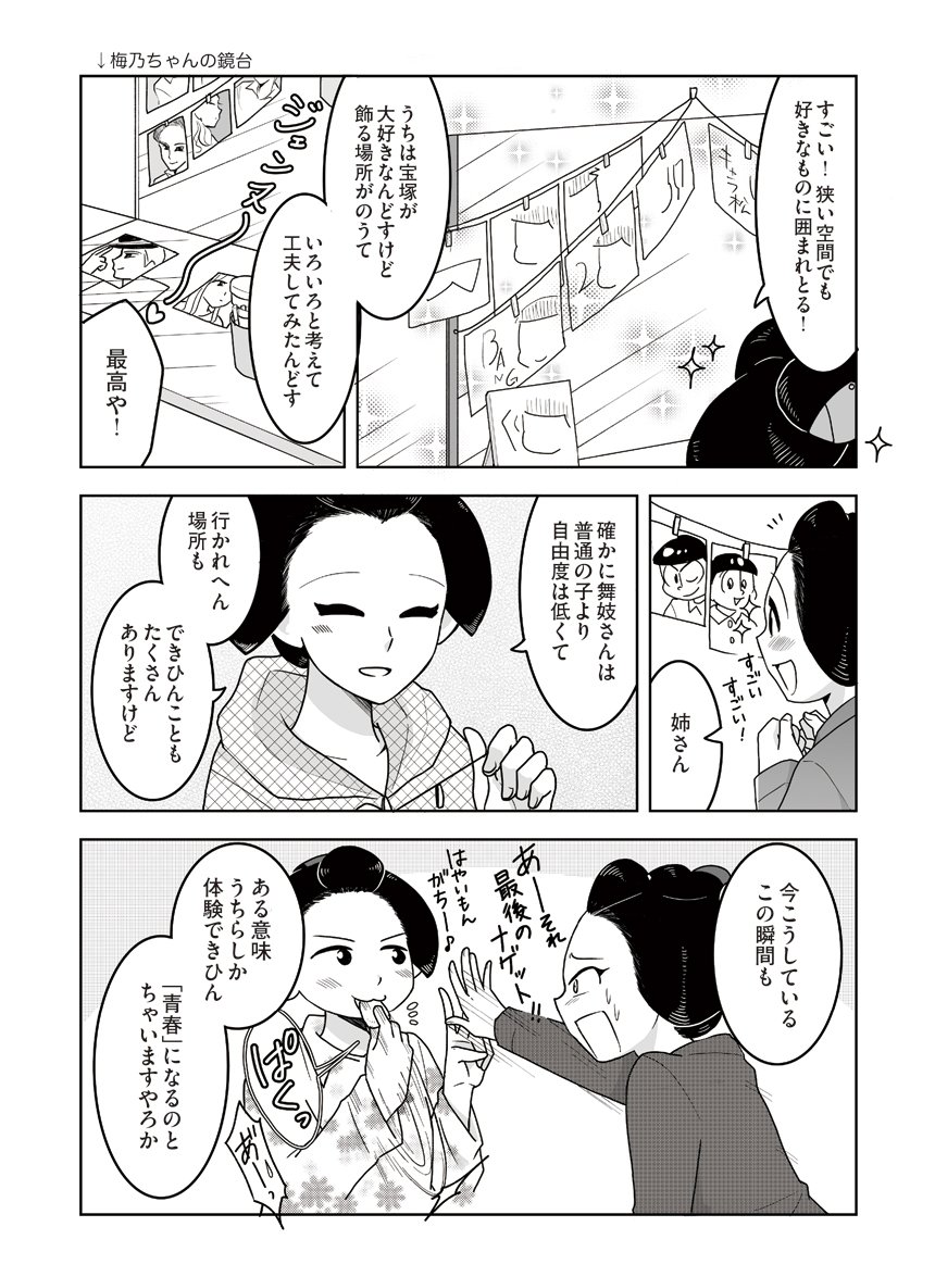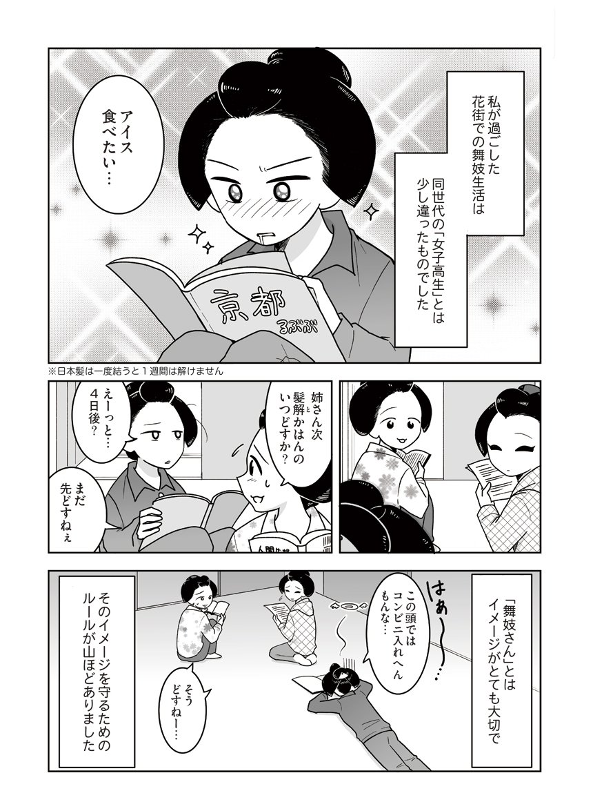 元舞妓の作者が、周囲とは少し違った進路を選ぶなかで感じたこと、考えたことを描くコミックエッセイ。