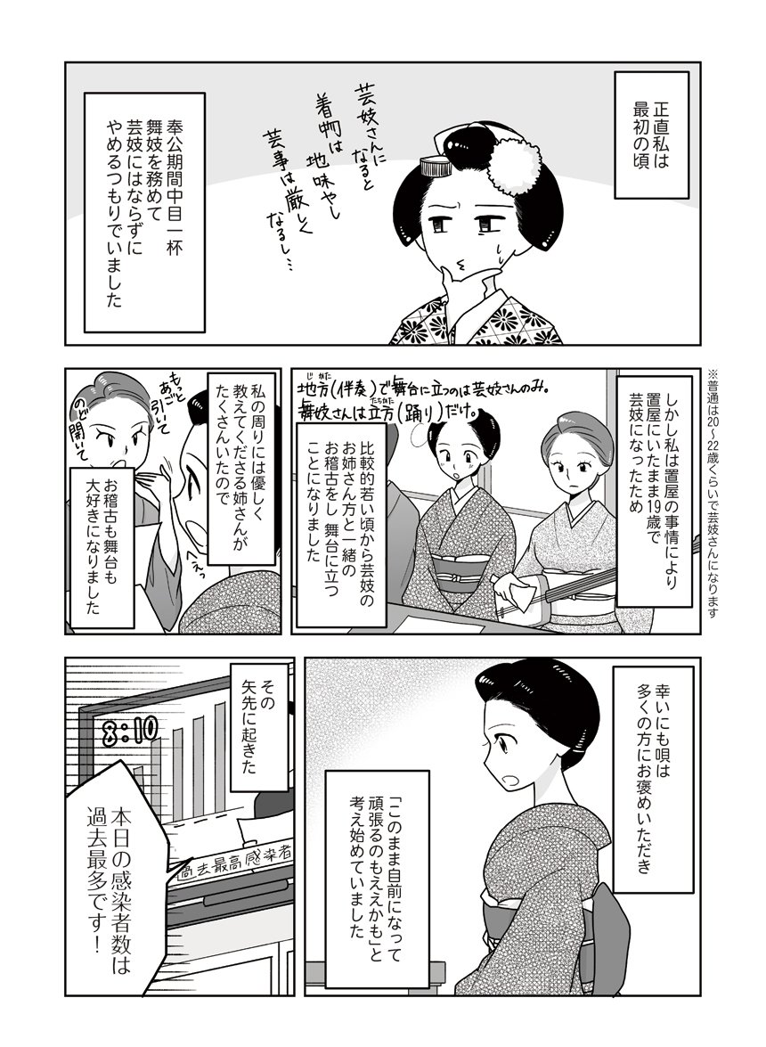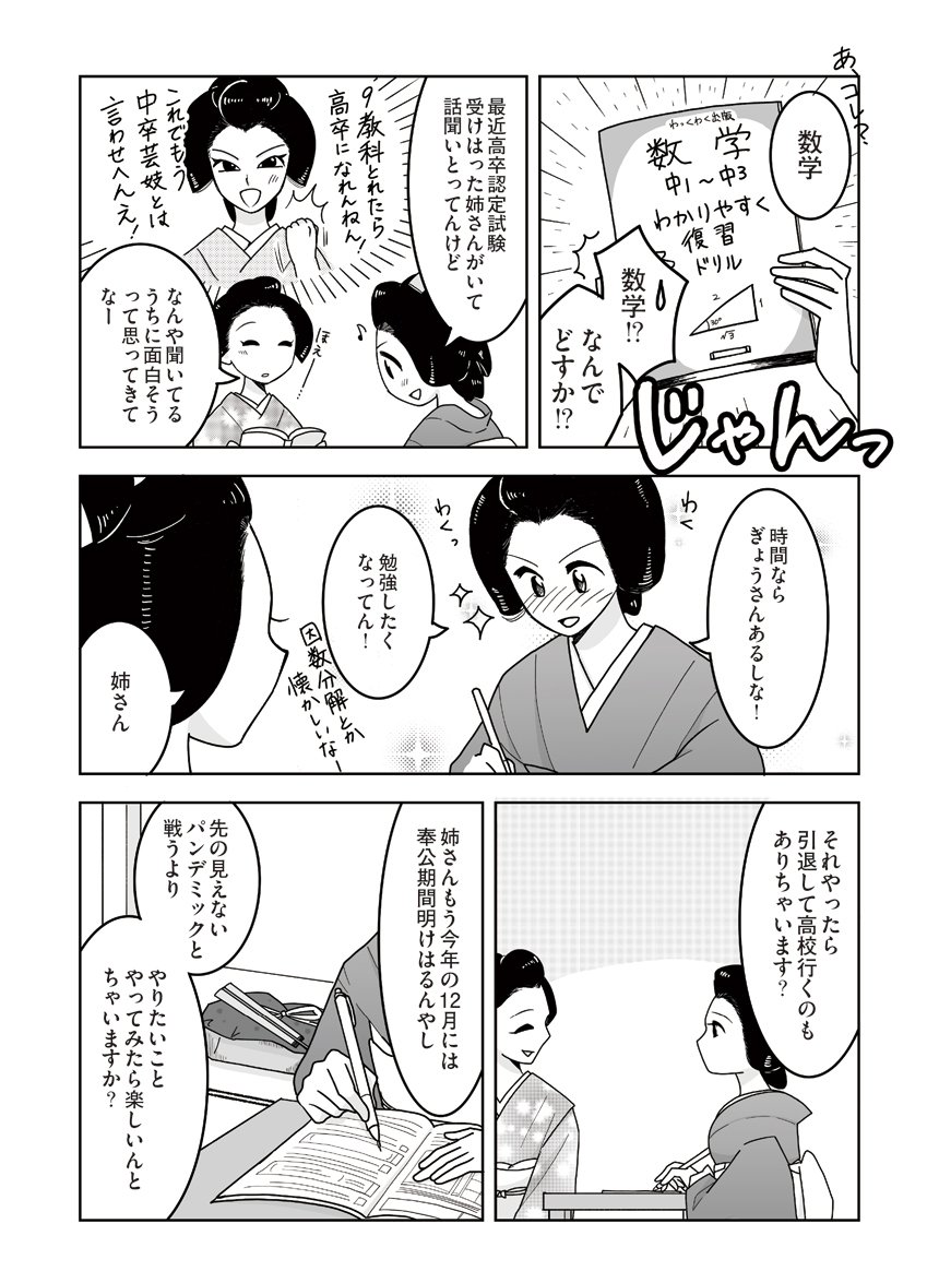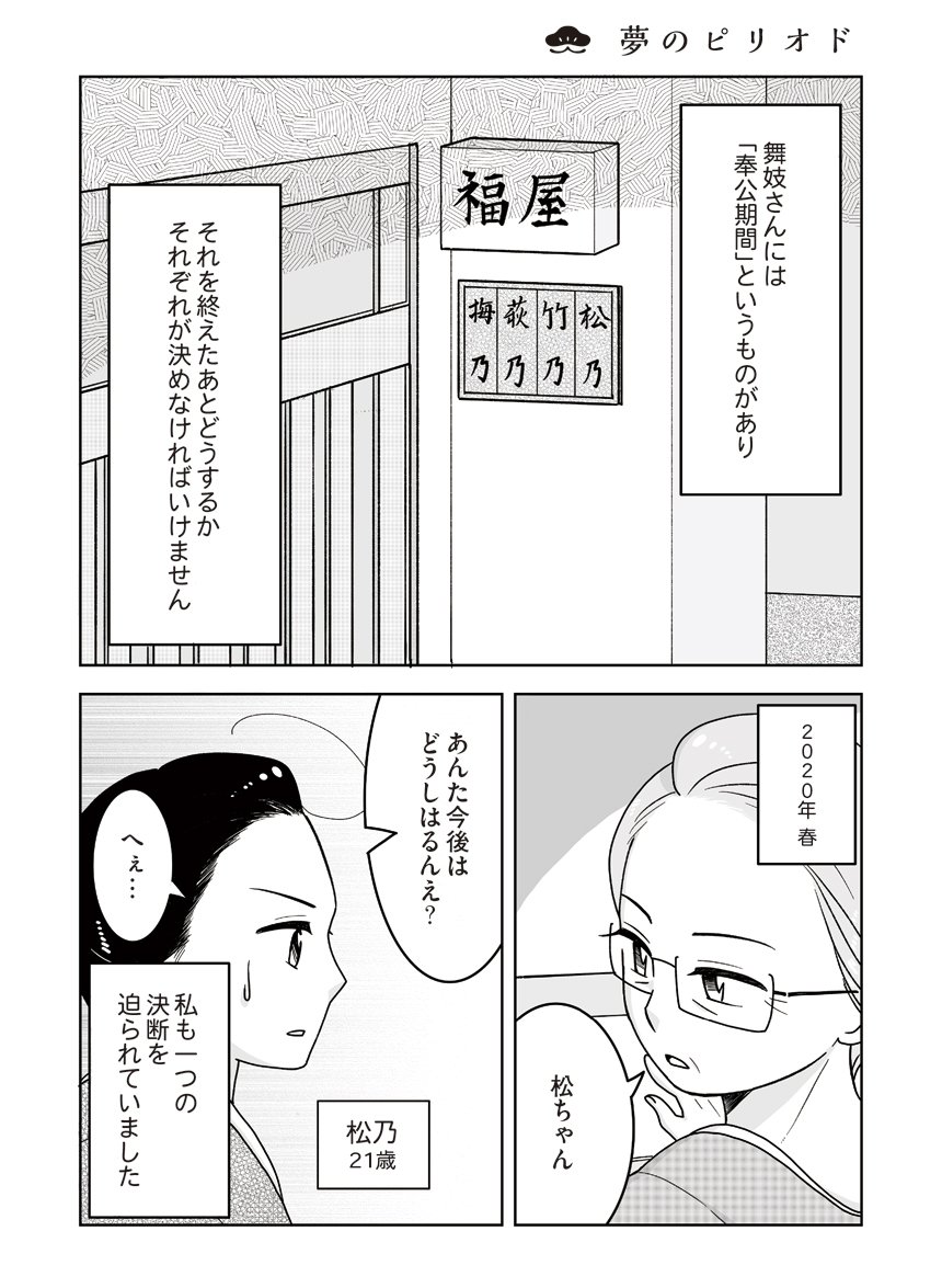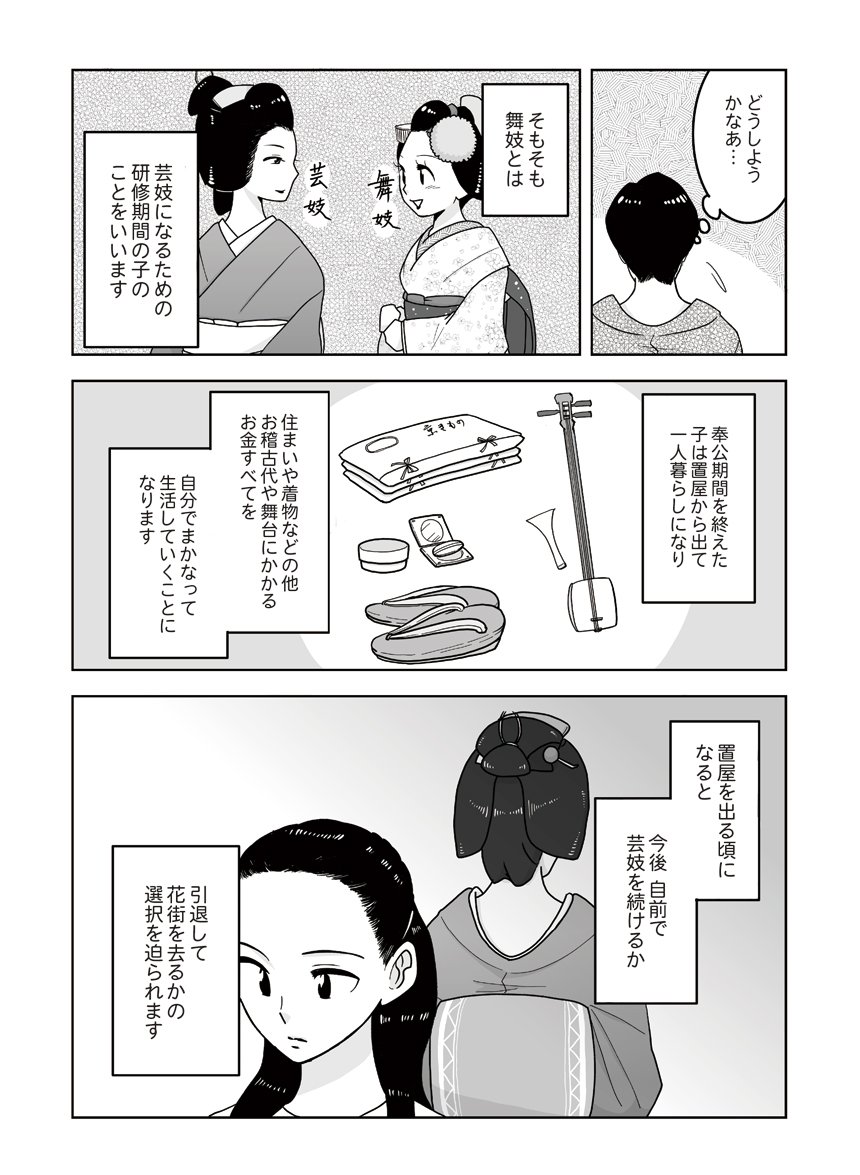 元舞妓の作者が、周囲とは少し違った進路を選ぶなかで感じたこと、考えたことを描くコミックエッセイ。