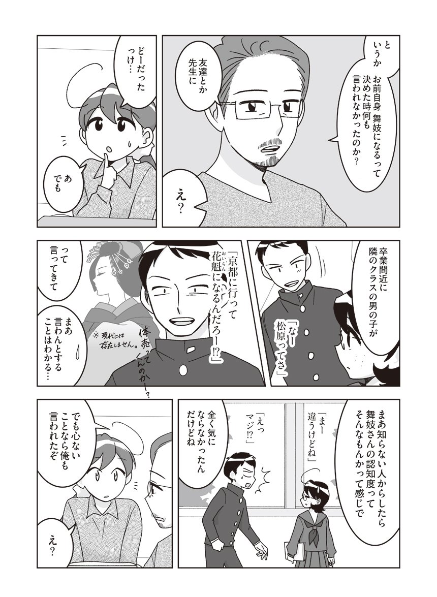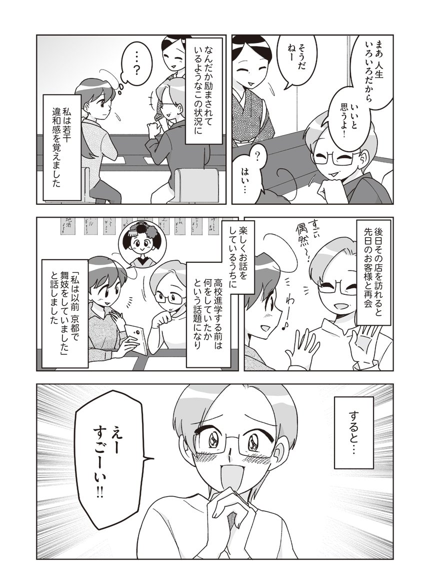 元舞妓の作者が、周囲とは少し違った進路を選ぶなかで感じたこと、考えたことを描くコミックエッセイ。