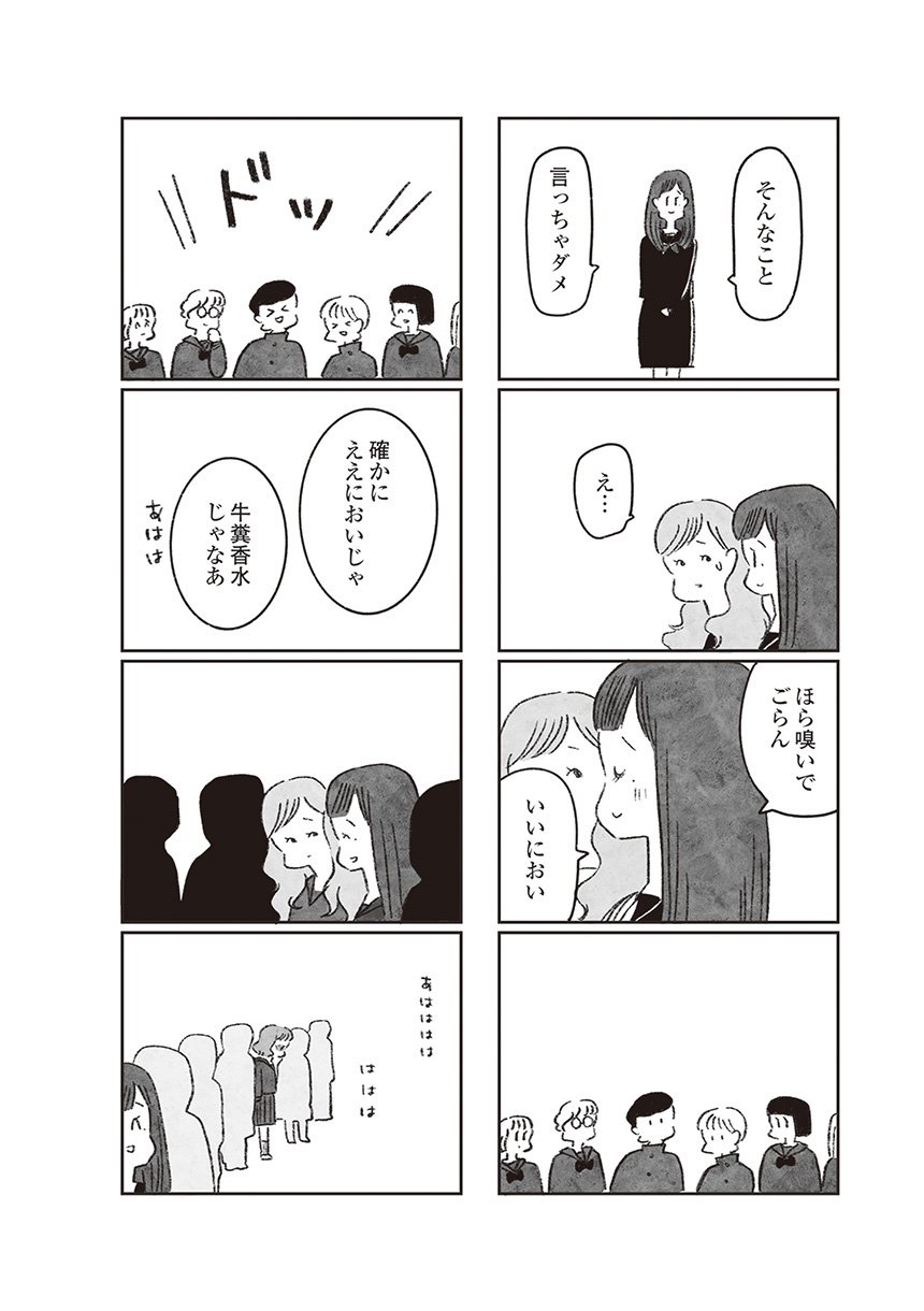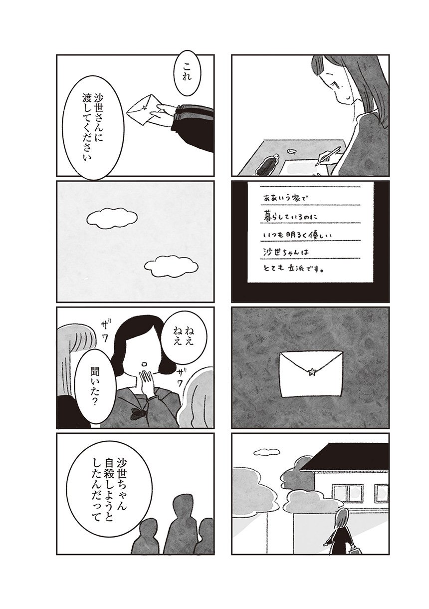 合言葉は「みんなで幸せになろう」。人気エッセイスト・中井ルミンが主宰するオンラインサロンには彼女を慕う大勢のファンが集まる。子どもの学校の担任との不和、義理の姉との確執、悩みに寄り添ってくれるルミンは尊敬できて、魅力的な存在。だけど何か違和感がある…。ルミンがブログに綴るのは、中学時代の同級生のSちゃんとの思い出。酪農家の娘Sちゃんは同級生から「牛の糞臭い」とからかわれ不登校になり、そんな同級生たちをルミンが嗜め、彼女の発案でSちゃんに手紙を渡し学校に来るようになったという話。そのブログをたまたま目にした旧友がいた。「このブログ…うそばっかり。だって沙世ちゃんあの次の日、自殺未遂を起こしたのに…」。サロンのメンバー、同級生や元夫、仕事仲間、ルミンをめぐる様々な人の思惑と言い分が交錯するミステリーコミックエッセイ。彼女は「いい人」? それとも「悪魔」? 本当のことを言っているのは一体誰なのか―――!?