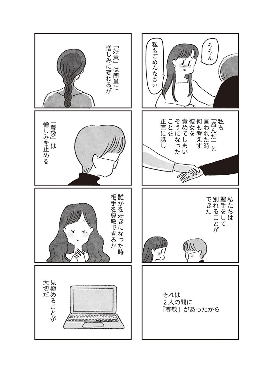 合言葉は「みんなで幸せになろう」。人気エッセイスト・中井ルミンが主宰するオンラインサロンには彼女を慕う大勢のファンが集まる。子どもの学校の担任との不和、義理の姉との確執、悩みに寄り添ってくれるルミンは尊敬できて、魅力的な存在。だけど何か違和感がある…。ルミンがブログに綴るのは、中学時代の同級生のSちゃんとの思い出。酪農家の娘Sちゃんは同級生から「牛の糞臭い」とからかわれ不登校になり、そんな同級生たちをルミンが嗜め、彼女の発案でSちゃんに手紙を渡し学校に来るようになったという話。そのブログをたまたま目にした旧友がいた。「このブログ…うそばっかり。だって沙世ちゃんあの次の日、自殺未遂を起こしたのに…」。サロンのメンバー、同級生や元夫、仕事仲間、ルミンをめぐる様々な人の思惑と言い分が交錯するミステリーコミックエッセイ。彼女は「いい人」? それとも「悪魔」? 本当のことを言っているのは一体誰なのか―――!?