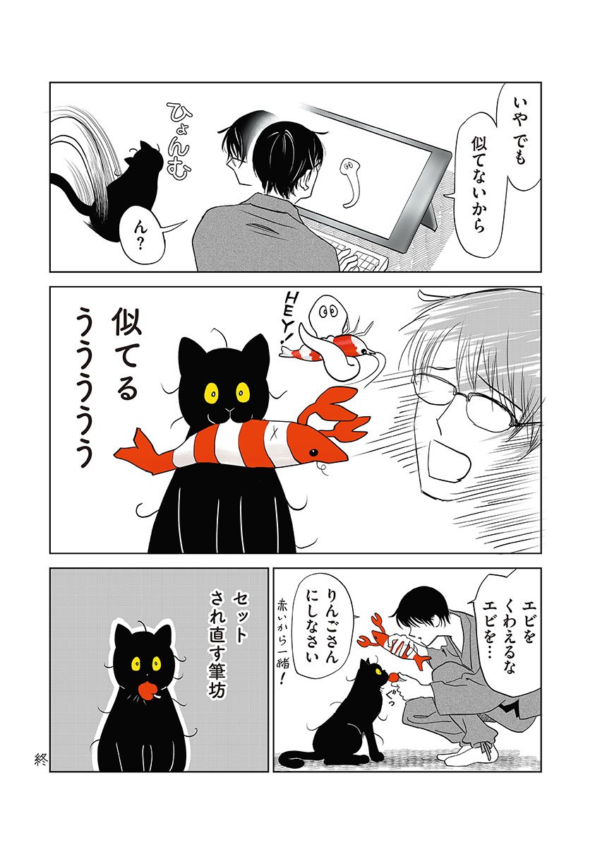 飼い主と筆坊の出会いを描いた描き下ろしも収録。