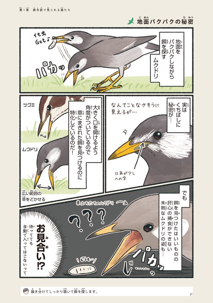 本書はそんな意外と身近で出会える鳥たちの可愛い素顔や豆知識をマンガで知ることができる一冊です。