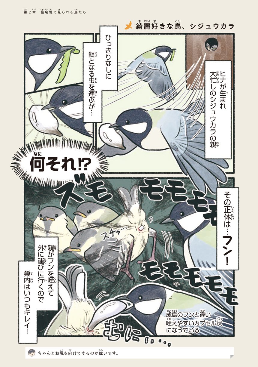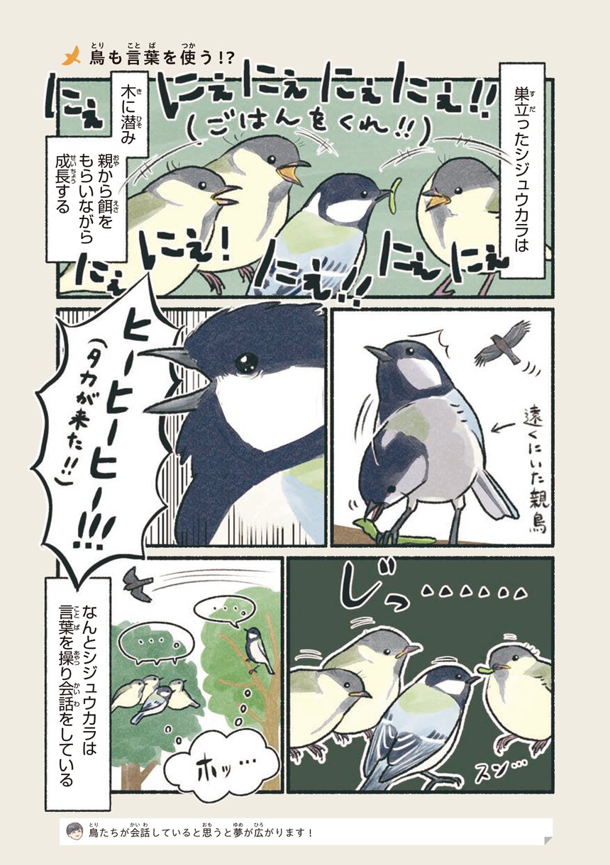 本書はそんな意外と身近で出会える鳥たちの可愛い素顔や豆知識をマンガで知ることができる一冊です。