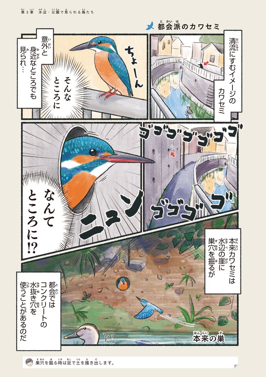 本書はそんな意外と身近で出会える鳥たちの可愛い素顔や豆知識をマンガで知ることができる一冊です。