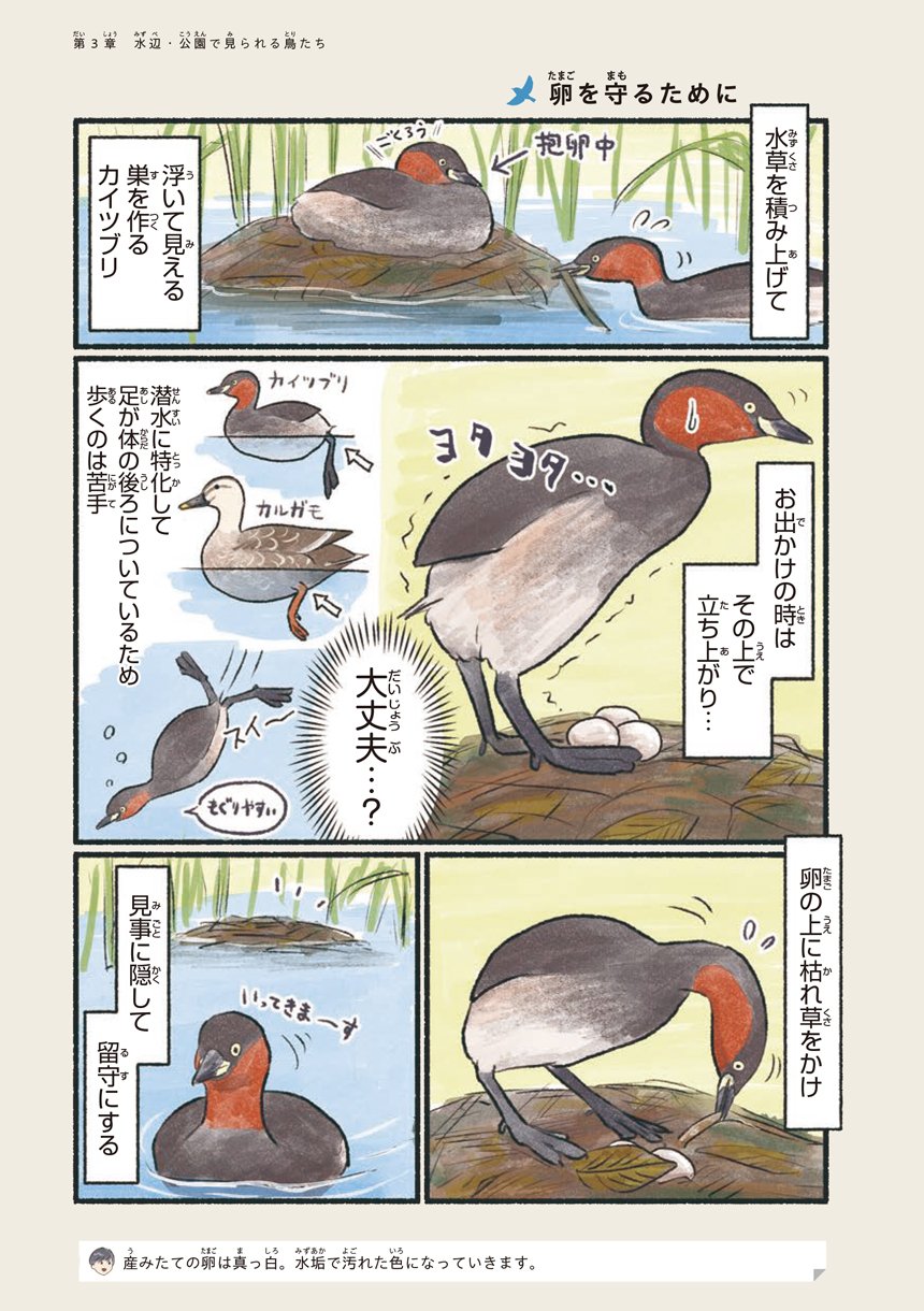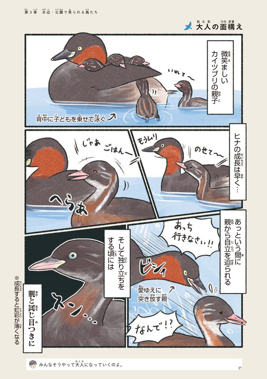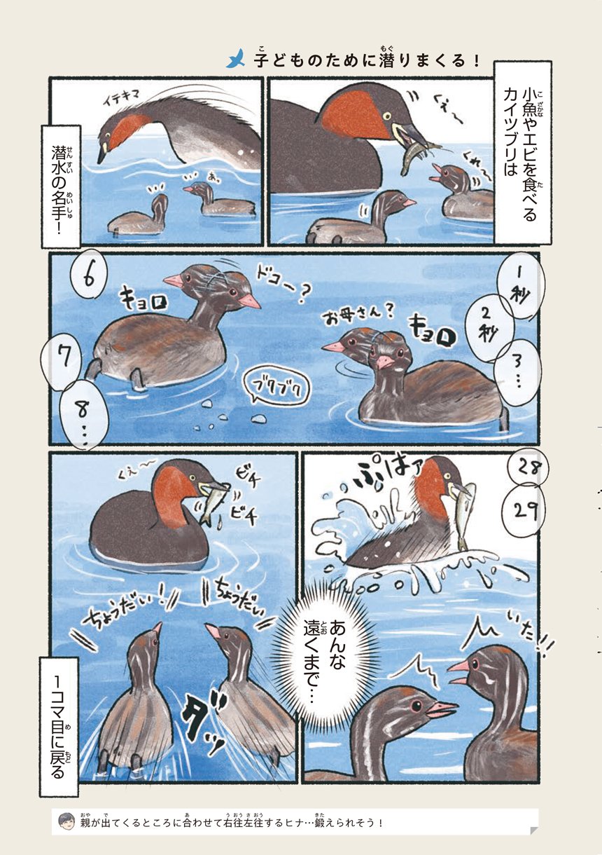 本書はそんな意外と身近で出会える鳥たちの可愛い素顔や豆知識をマンガで知ることができる一冊です。