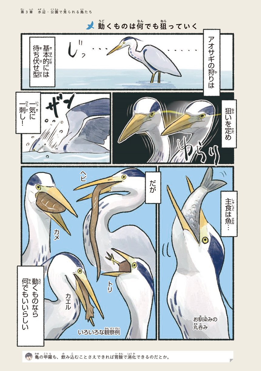 本書はそんな意外と身近で出会える鳥たちの可愛い素顔や豆知識をマンガで知ることができる一冊です。