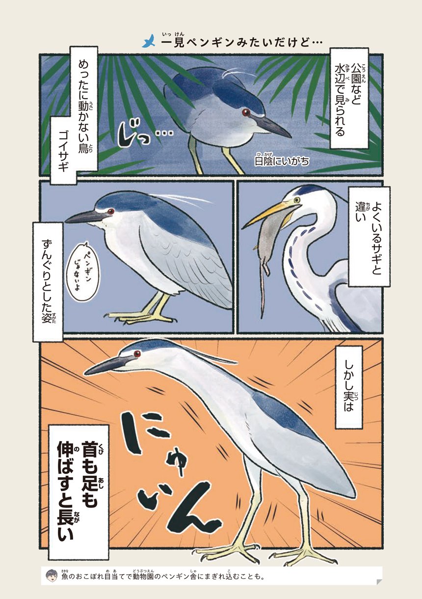本書はそんな意外と身近で出会える鳥たちの可愛い素顔や豆知識をマンガで知ることができる一冊です。
