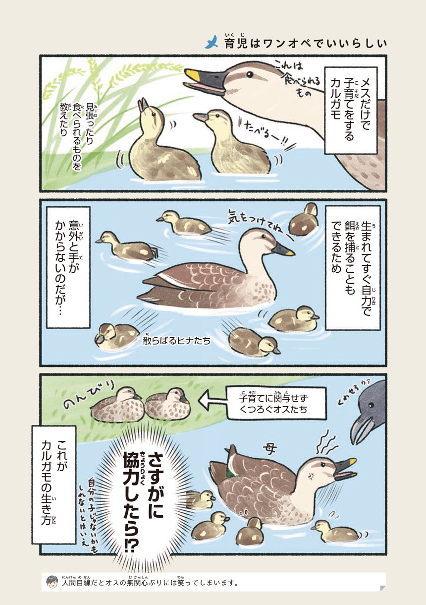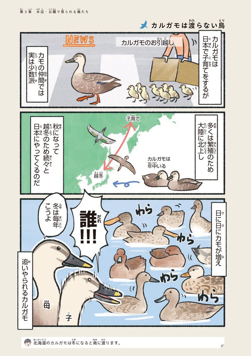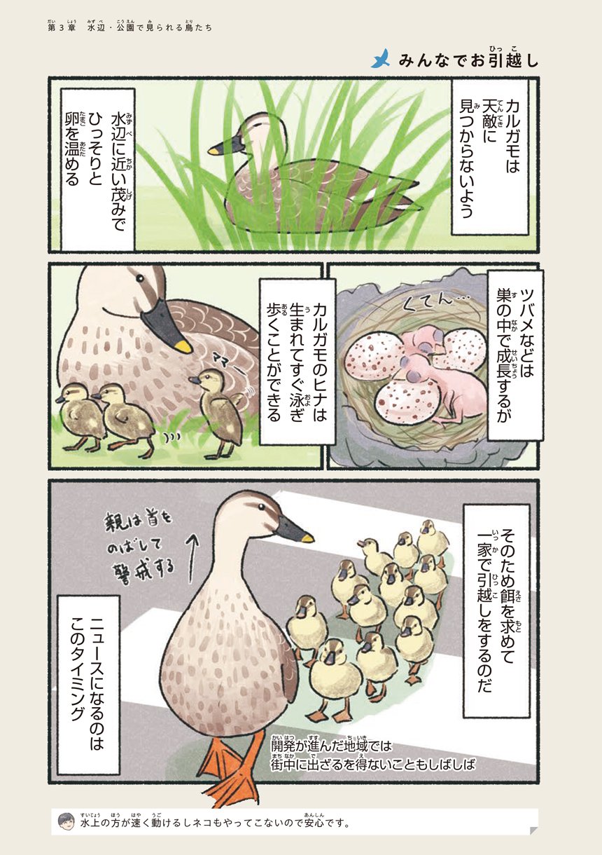 本書はそんな意外と身近で出会える鳥たちの可愛い素顔や豆知識をマンガで知ることができる一冊です。