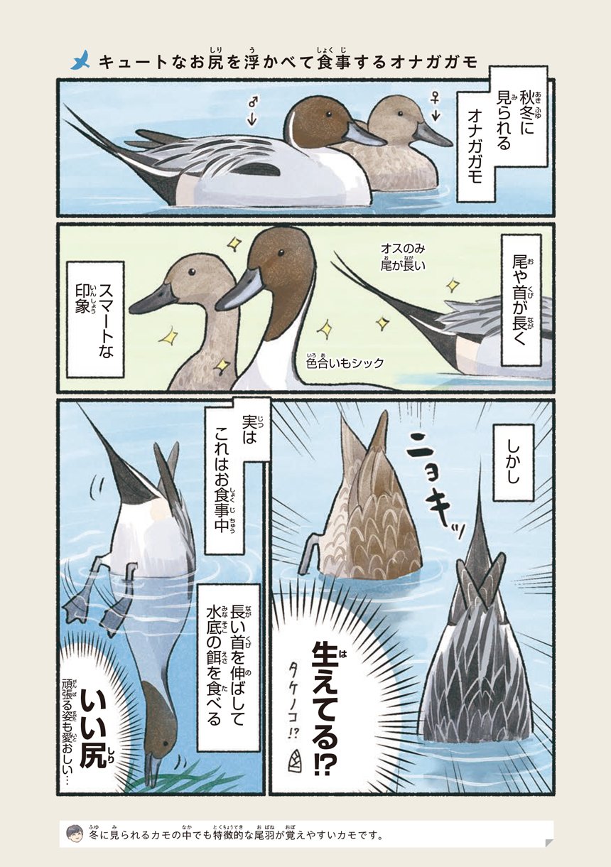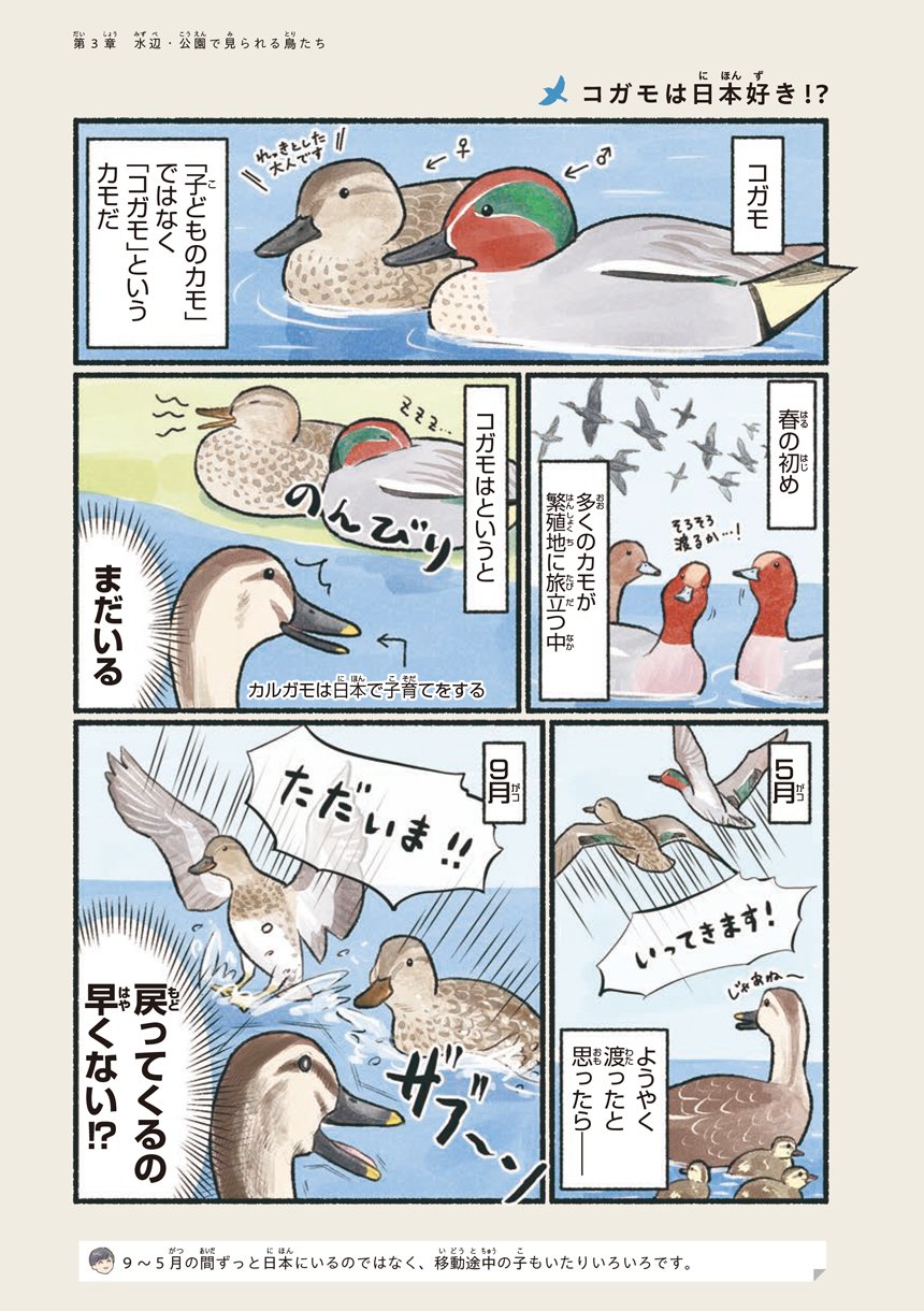本書はそんな意外と身近で出会える鳥たちの可愛い素顔や豆知識をマンガで知ることができる一冊です。