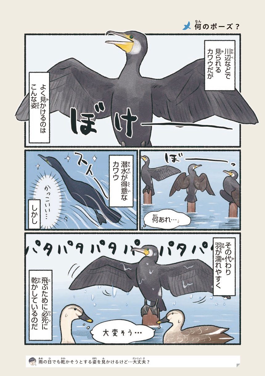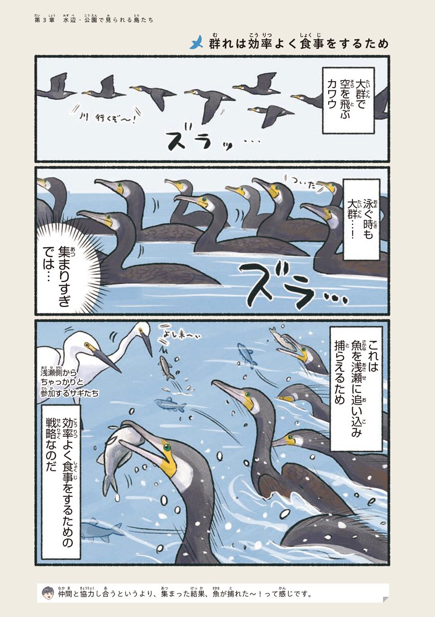 本書はそんな意外と身近で出会える鳥たちの可愛い素顔や豆知識をマンガで知ることができる一冊です。