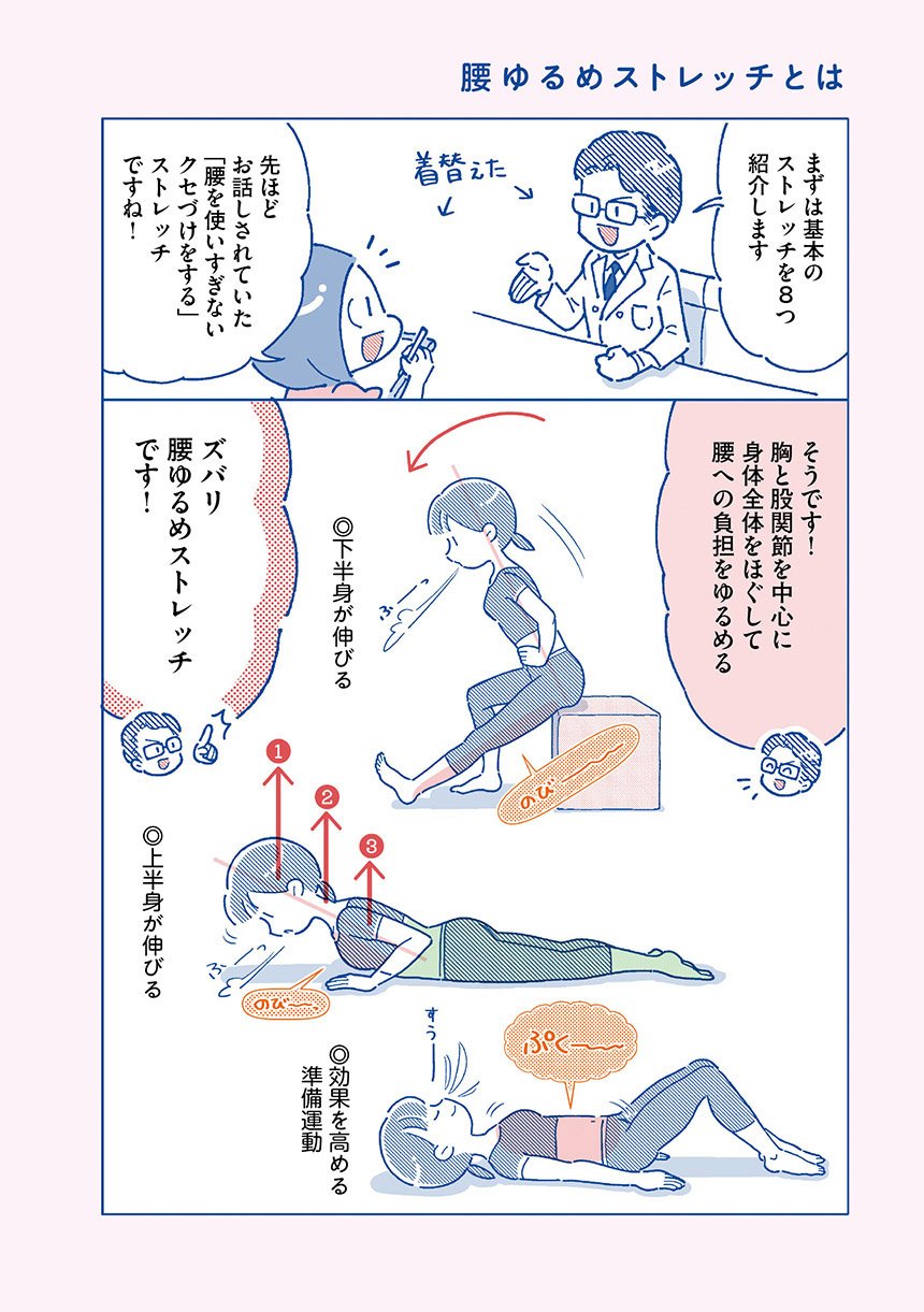 胸と股関節を中心に身体をほぐして、腰への負担をゆるめる。それが、腰ゆるめストレッチ!