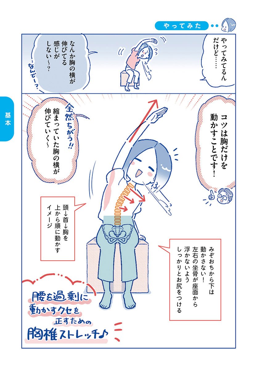 腰痛改善のカギは、胸と股関節をほぐすこと。
