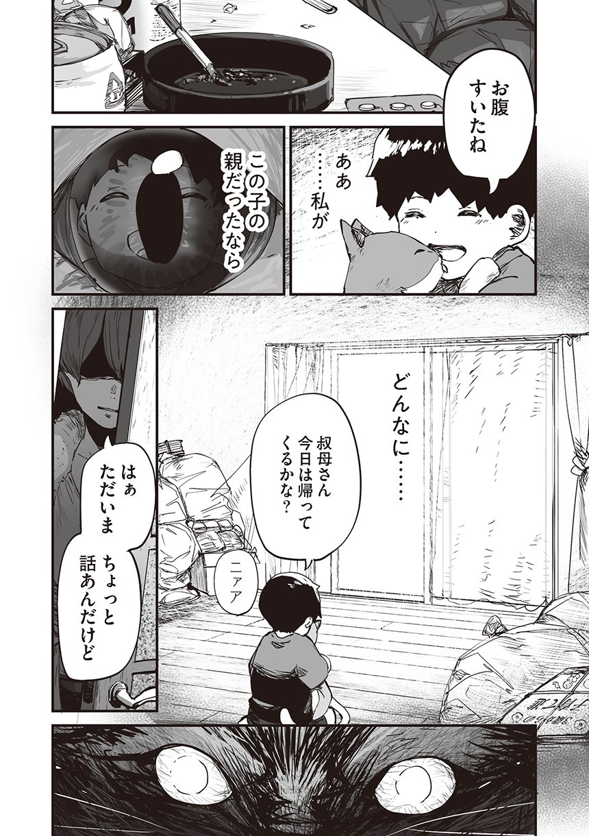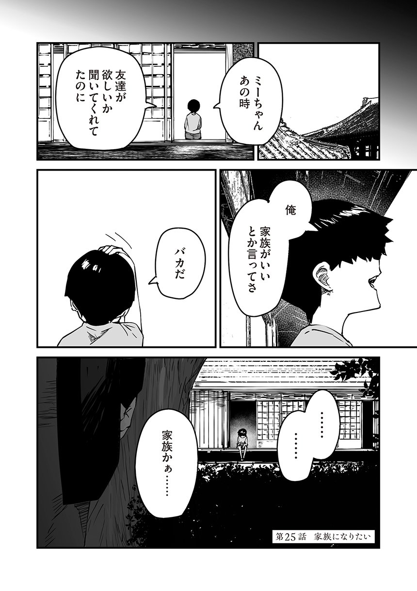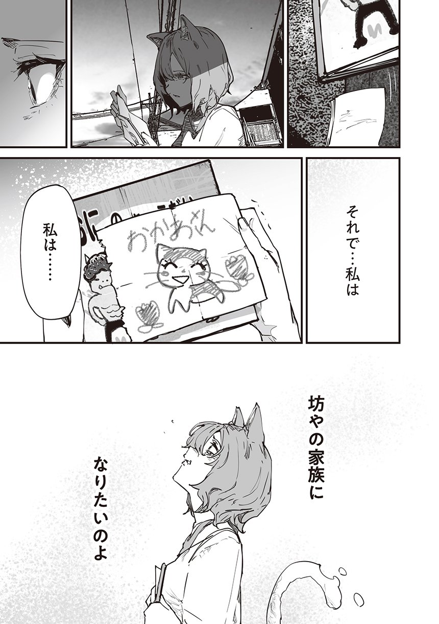 化け猫のミコは怪異が見える少年と出会う。両親を亡くして引き取られた先で暮らす少年の孤独を埋めるように友好を深めていくミコであったが、人間でないが故に本当の家族になってあげることは叶わなかった。