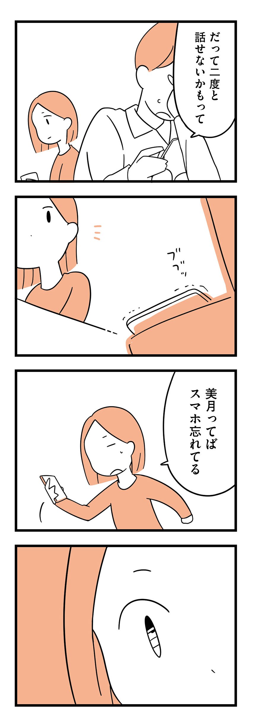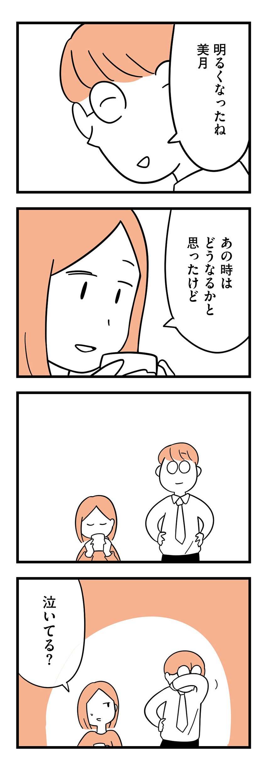 美月はかつてストーカー被害に遭い、男性恐怖症になった過去があり、彼氏ができたことを知った優子は感慨にふける。