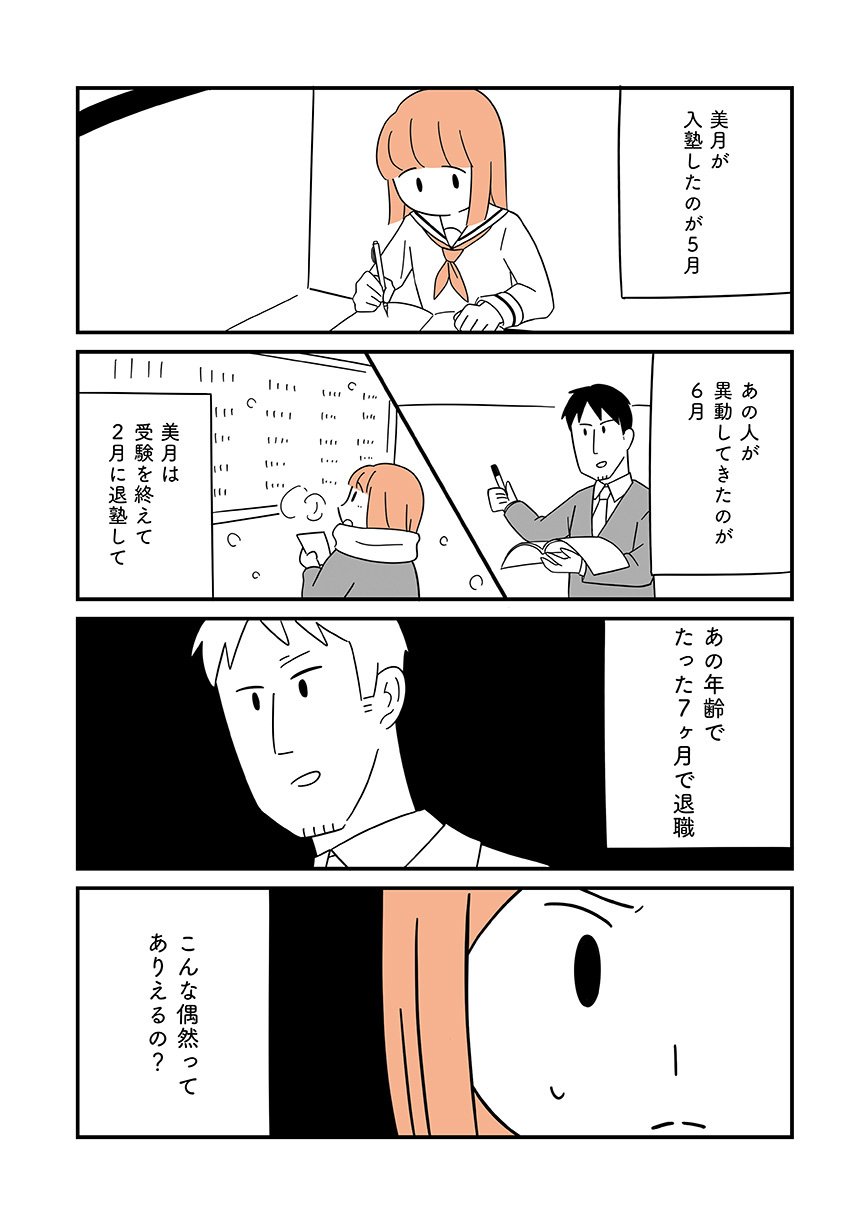 美月はかつてストーカー被害に遭い、男性恐怖症になった過去があり、彼氏ができたことを知った優子は感慨にふける。