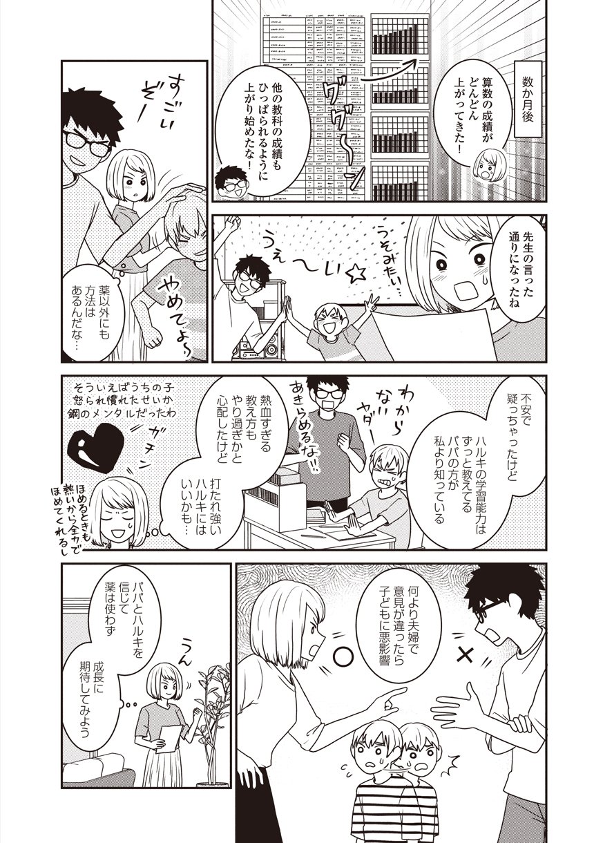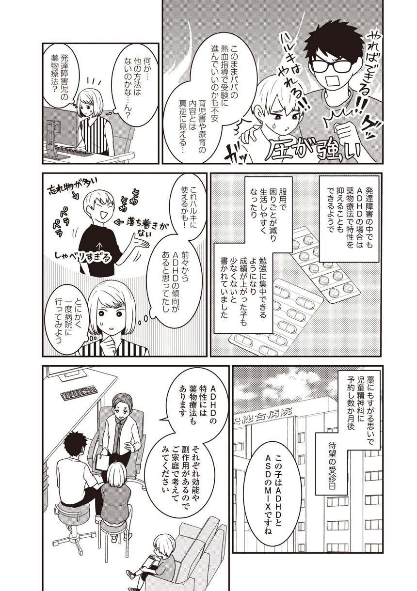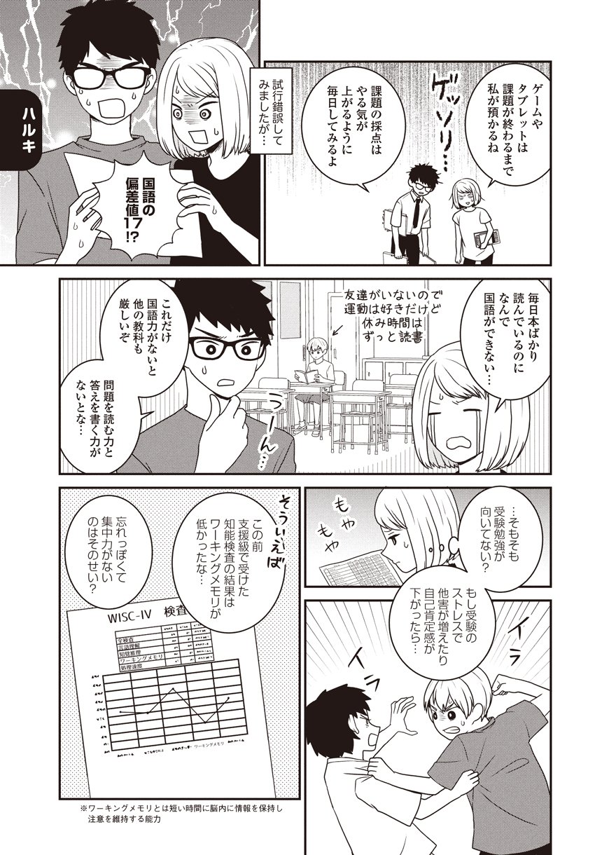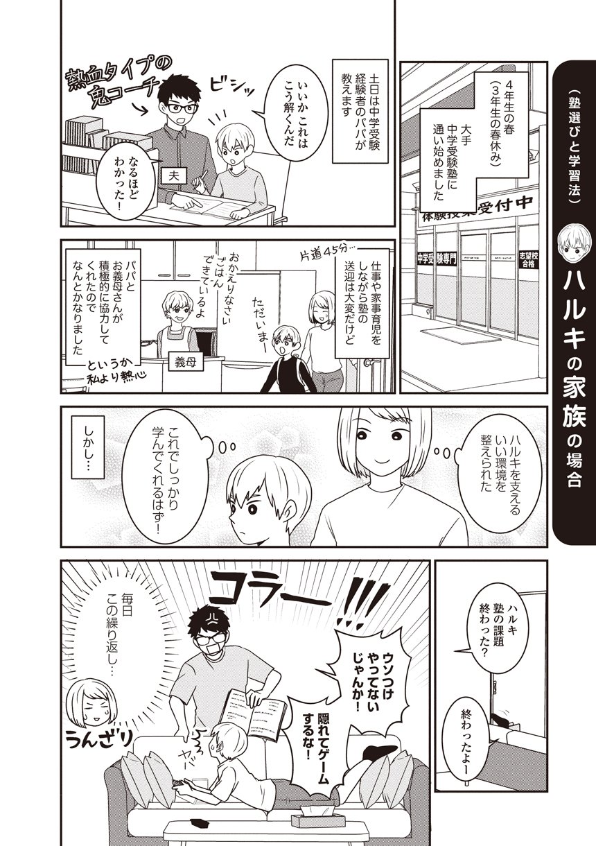 ひとりひとり異なる特性を持つ4人の子どもたちと家族が、「受験を決意した理由」「塾選び」「学校選び」「勉強方法」「発達障害の診断を受けるか(薬を服用して受験に臨むか)」「緊張の合否」「受験した学校へ進学して感じたこと」などテーマごとに、向き合った壁や大切にしたことなどを描きます。マンガの間には、医師の視点&中学受験専門家の視点で、親の不安を解決するコラムも充実。