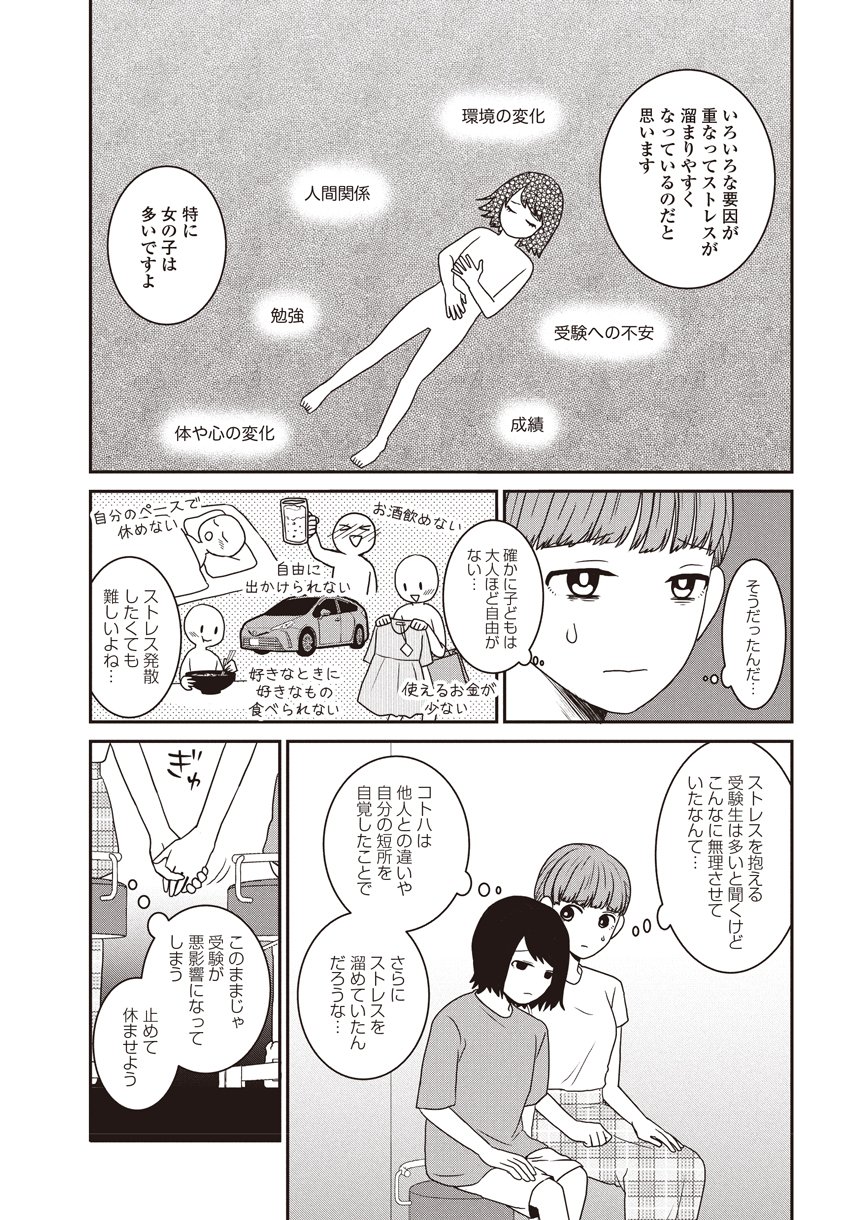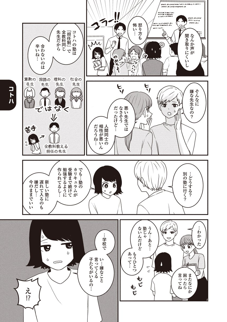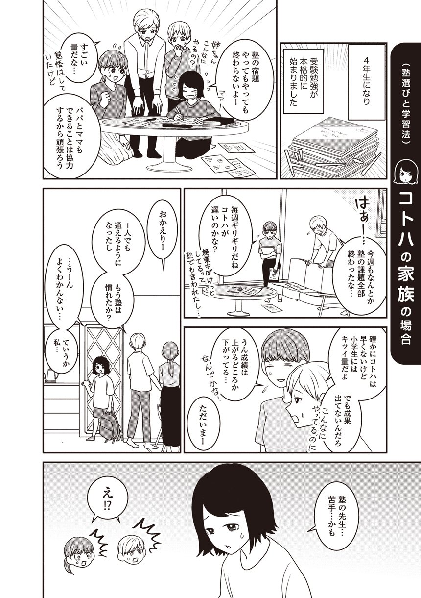 ひとりひとり異なる特性を持つ4人の子どもたちと家族が、「受験を決意した理由」「塾選び」「学校選び」「勉強方法」「発達障害の診断を受けるか(薬を服用して受験に臨むか)」「緊張の合否」「受験した学校へ進学して感じたこと」などテーマごとに、向き合った壁や大切にしたことなどを描きます。マンガの間には、医師の視点&中学受験専門家の視点で、親の不安を解決するコラムも充実。