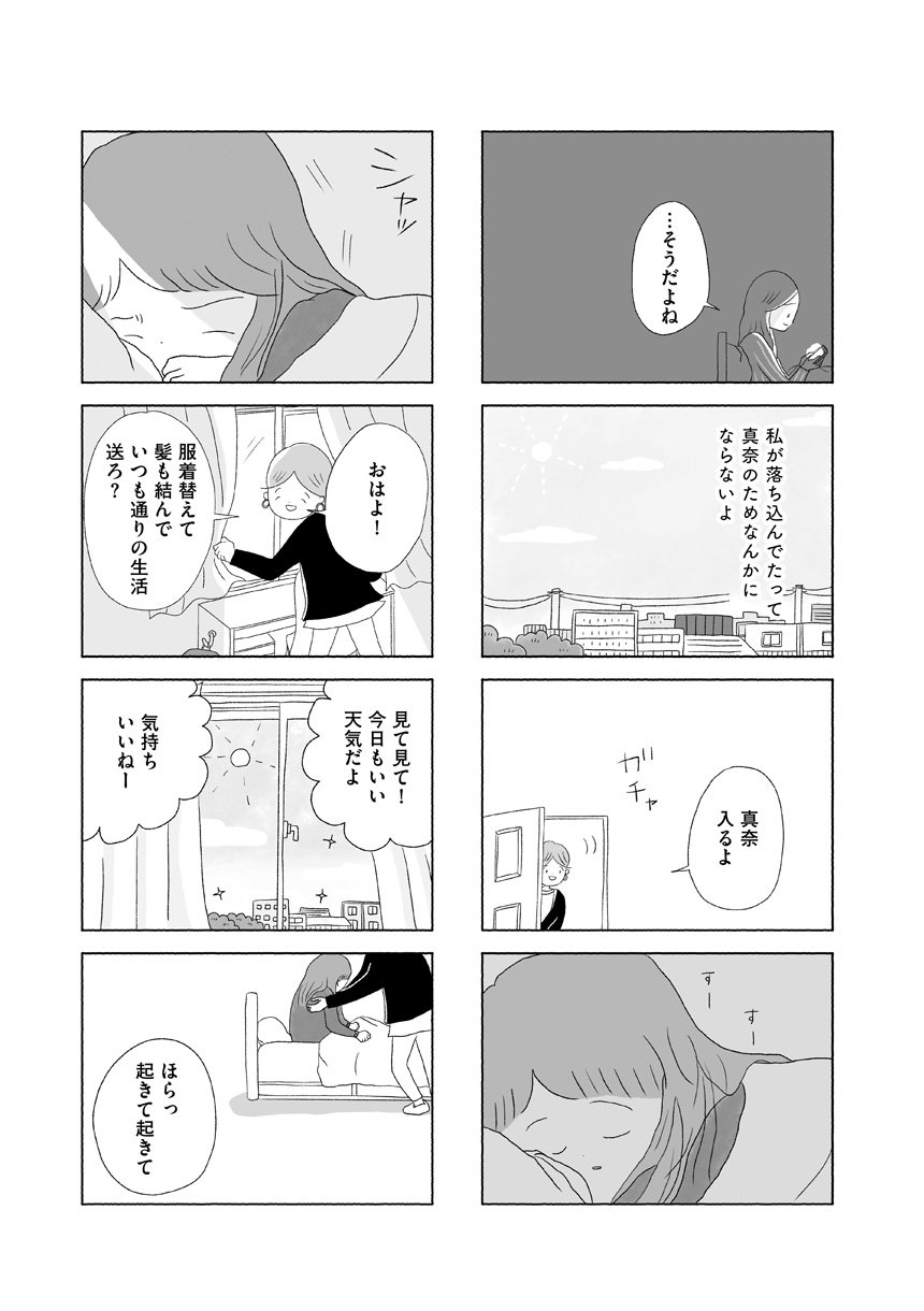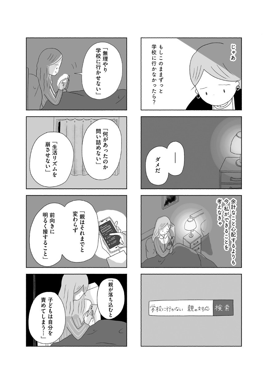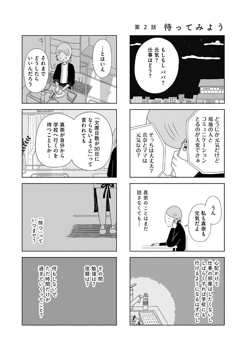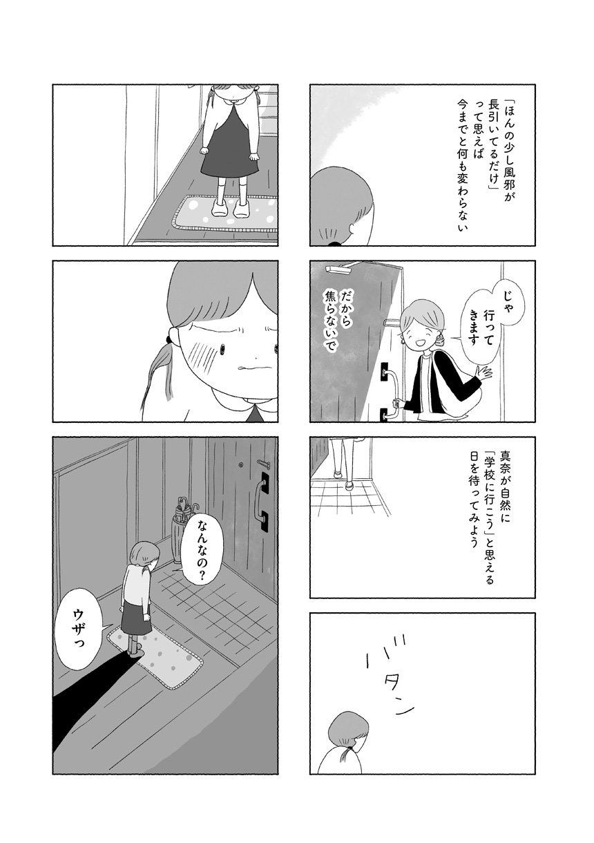そう呟いた小学5年生で一人娘の真奈は、その日を境に学校へ行かなくなってしまった。成績も良く、友達もたくさんいて、親とも良好な関係を築いていた娘がなぜ、突然休むようになってしまったのか? その理由は、担任の教師と面談をしても、真奈の親友のママ友と話しても、わからなくなっていくばかりだった。友達が家を訪ねてきたのをきっかけに、一度は学校へ行くことができた真奈だったが、帰宅するなり自室にこもると、暴言まで吐くようになってしまう。理解していたはずの娘の気持ちが掴めず、様々な解決策を試すものの事態は悪化の一途をたどる。いったい娘になにがあったのか――。