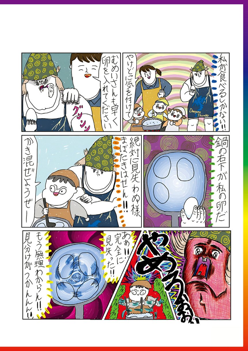 貧乏すぎてコップがすべてワンカップの空き瓶だった幼少時代、抜いても抜いても生えてくる福毛の話、ギガサイズ化した友達の金魚の話など、すべてどうでもいいのに泣くほど笑えて元気が出るエピソード満載。著者のつたない記憶とオリジナリティあふれる解釈で描いた「おむすびころりん」「ジャックと豆の木」など、「テキトーだけど泣くほど笑える! カッラフルなむっっかし話」も特別収録。疲れた心にぶっっ刺さる! いろんなことがどうでもよくなる全部実話のコミックエッセイ!!