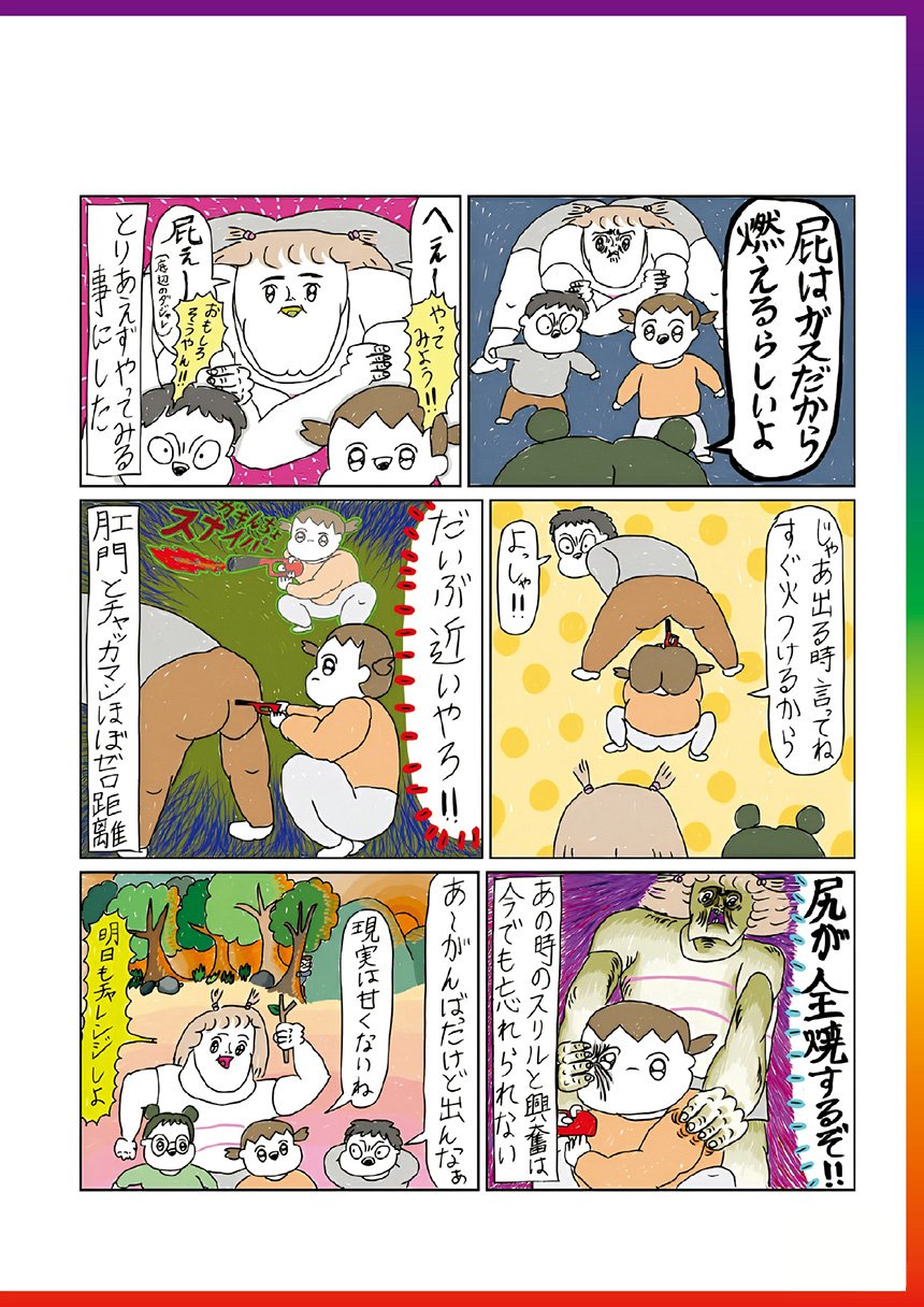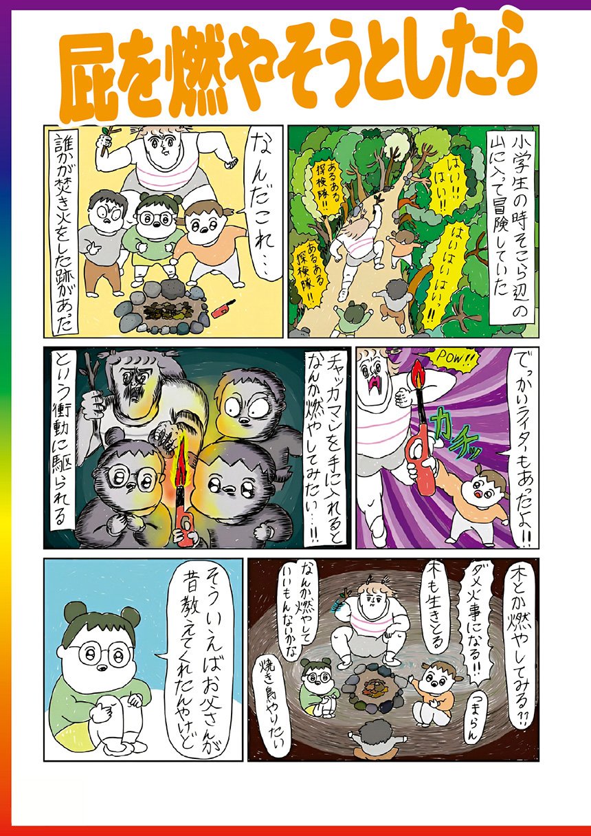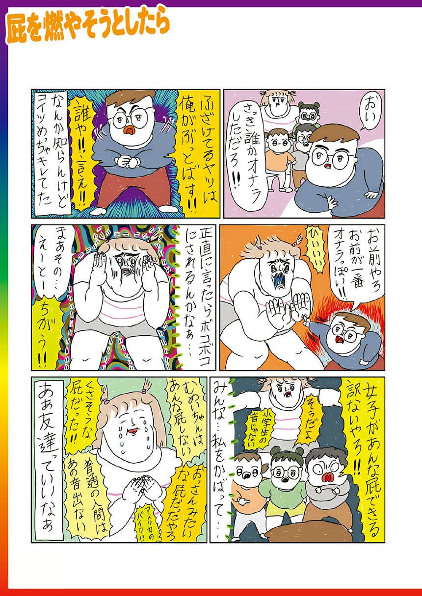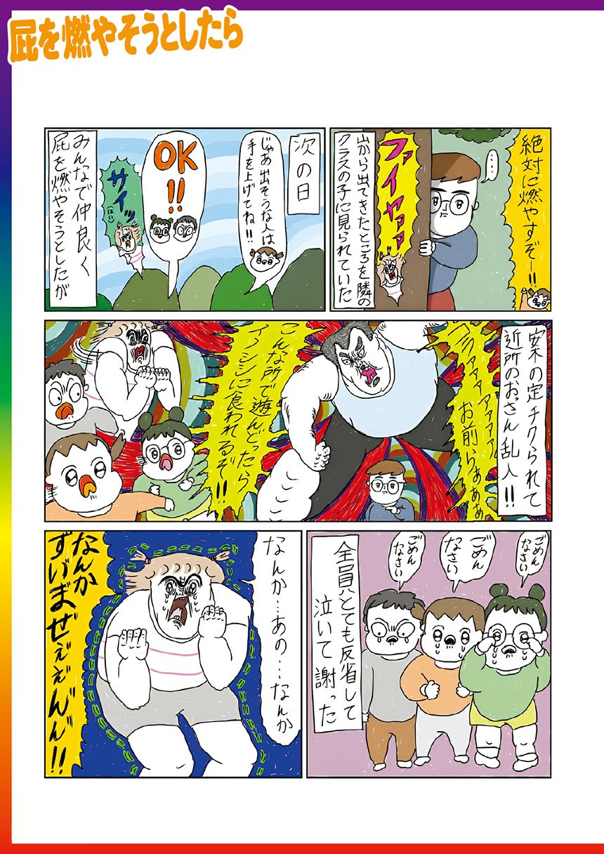 貧乏すぎてコップがすべてワンカップの空き瓶だった幼少時代、抜いても抜いても生えてくる福毛の話、ギガサイズ化した友達の金魚の話など、すべてどうでもいいのに泣くほど笑えて元気が出るエピソード満載。著者のつたない記憶とオリジナリティあふれる解釈で描いた「おむすびころりん」「ジャックと豆の木」など、「テキトーだけど泣くほど笑える! カッラフルなむっっかし話」も特別収録。疲れた心にぶっっ刺さる! いろんなことがどうでもよくなる全部実話のコミックエッセイ!!