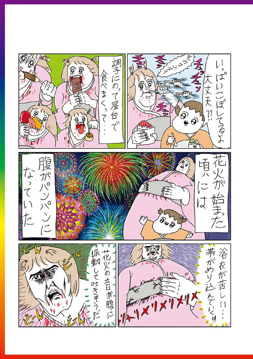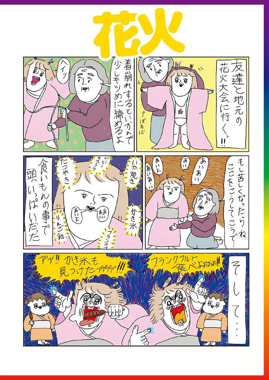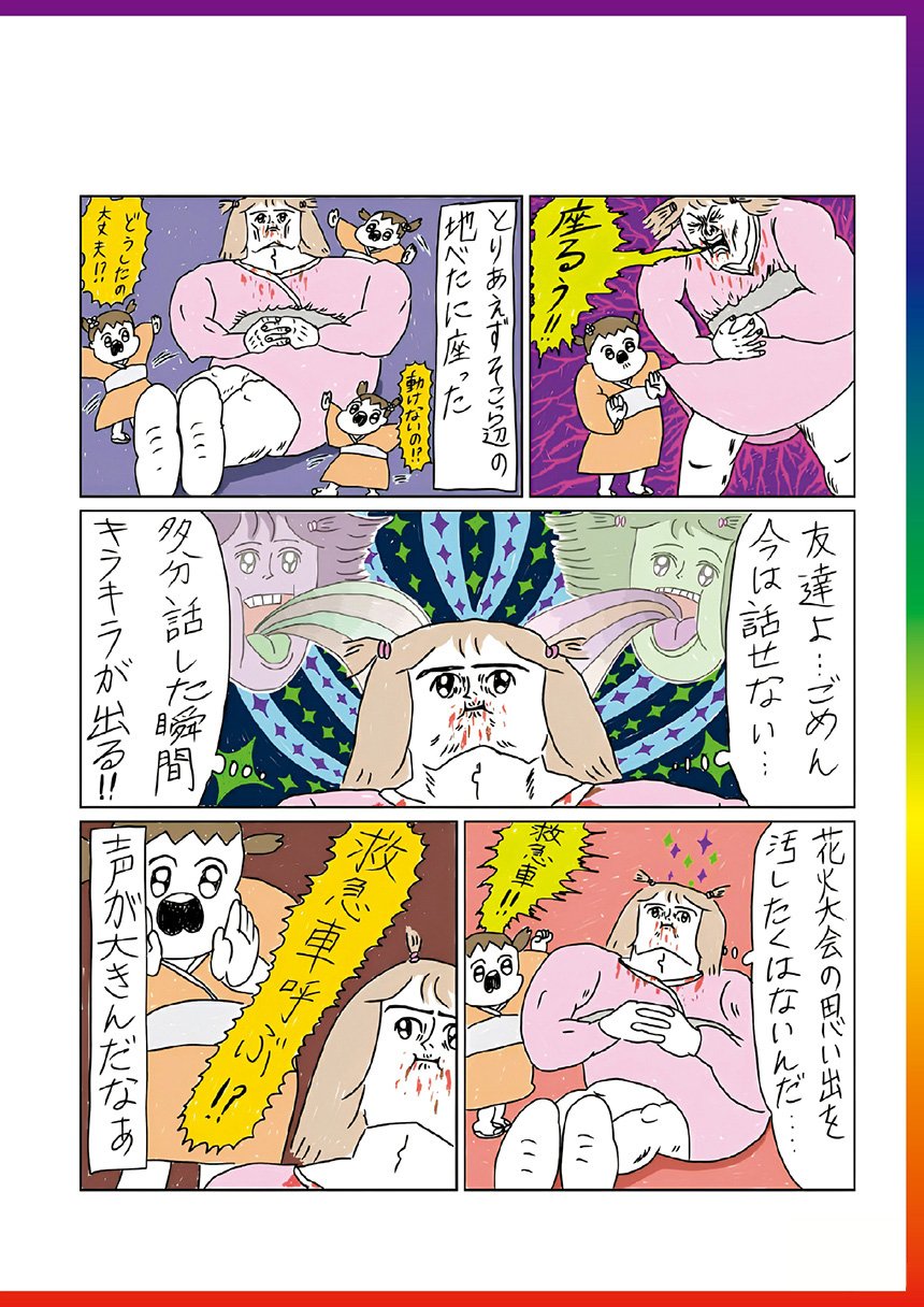 貧乏すぎてコップがすべてワンカップの空き瓶だった幼少時代、抜いても抜いても生えてくる福毛の話、ギガサイズ化した友達の金魚の話など、すべてどうでもいいのに泣くほど笑えて元気が出るエピソード満載。著者のつたない記憶とオリジナリティあふれる解釈で描いた「おむすびころりん」「ジャックと豆の木」など、「テキトーだけど泣くほど笑える! カッラフルなむっっかし話」も特別収録。疲れた心にぶっっ刺さる! いろんなことがどうでもよくなる全部実話のコミックエッセイ!!