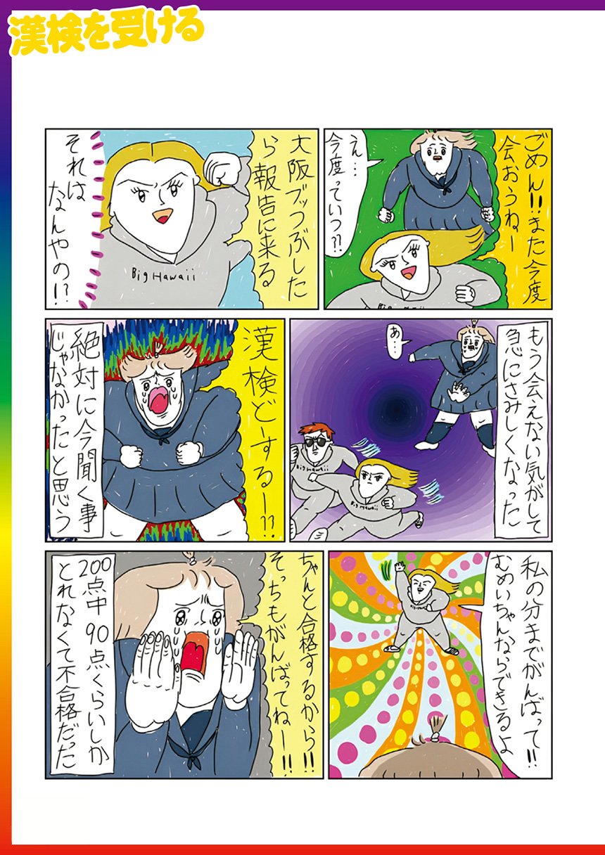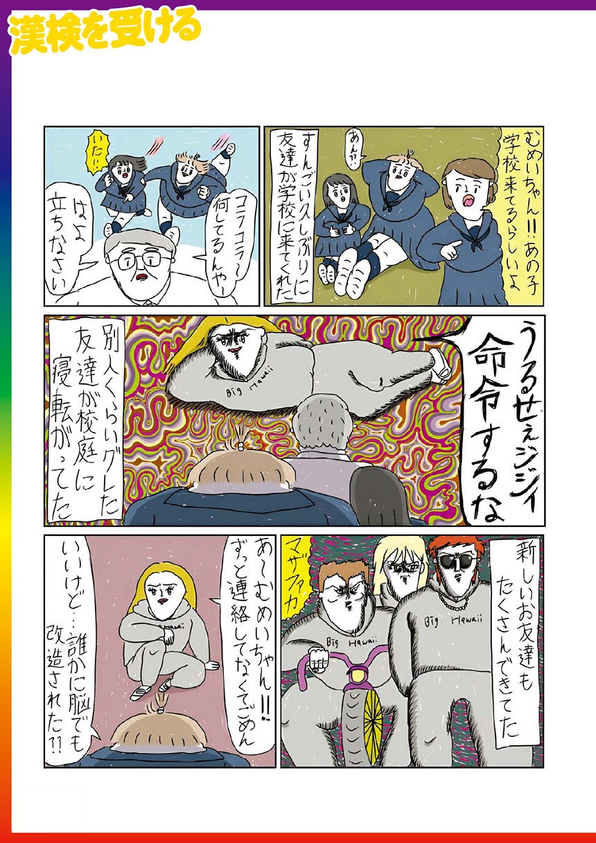 貧乏すぎてコップがすべてワンカップの空き瓶だった幼少時代、抜いても抜いても生えてくる福毛の話、ギガサイズ化した友達の金魚の話など、すべてどうでもいいのに泣くほど笑えて元気が出るエピソード満載。著者のつたない記憶とオリジナリティあふれる解釈で描いた「おむすびころりん」「ジャックと豆の木」など、「テキトーだけど泣くほど笑える! カッラフルなむっっかし話」も特別収録。疲れた心にぶっっ刺さる! いろんなことがどうでもよくなる全部実話のコミックエッセイ!!