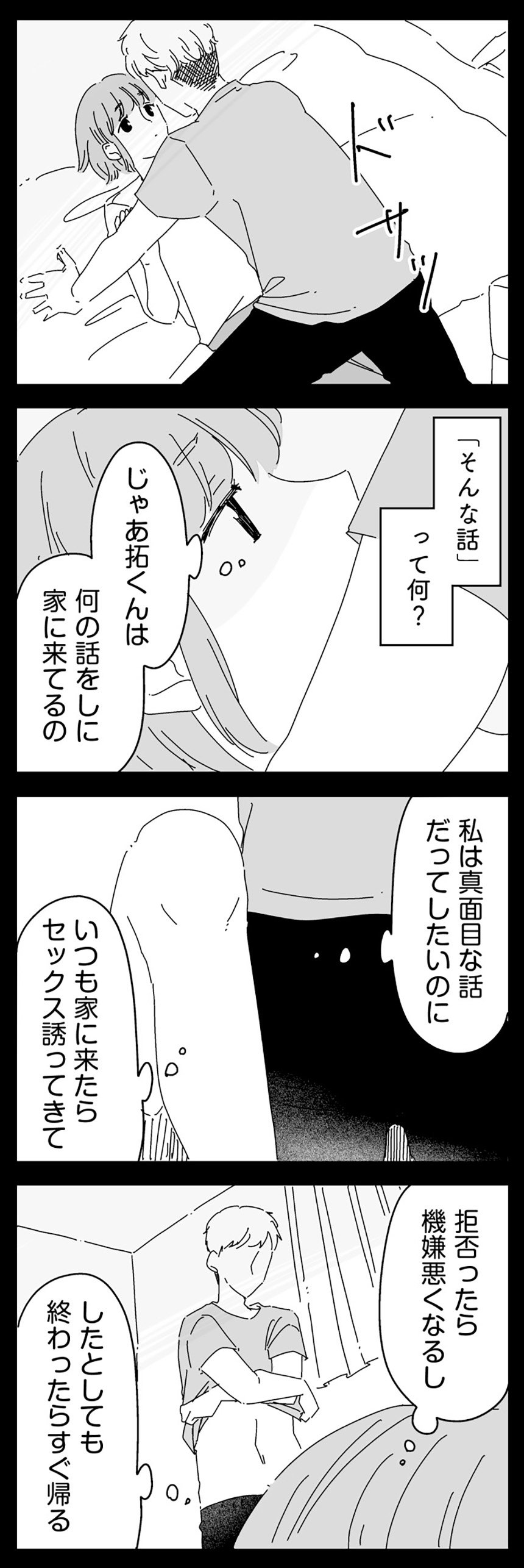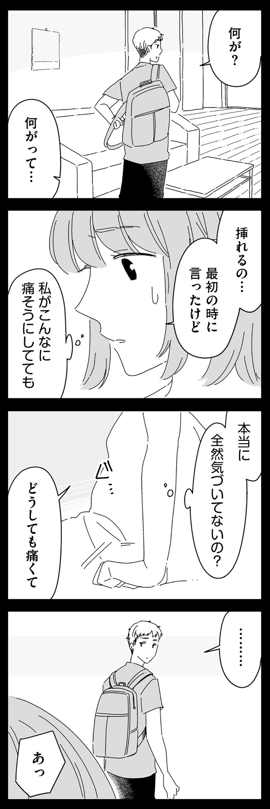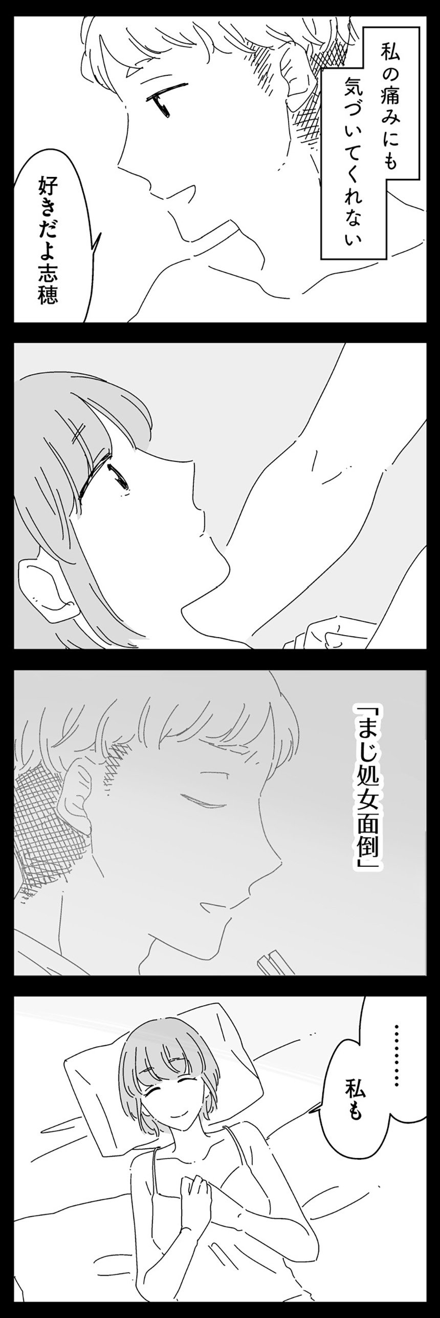 大学時代に初めてできた彼氏との初体験で感じた、強烈な痛みが原因でトラウマを抱える志穂。その彼氏に浮気されたことで、自分さえ我慢すれば上手くいくのだと痛みを隠すようになっていた。