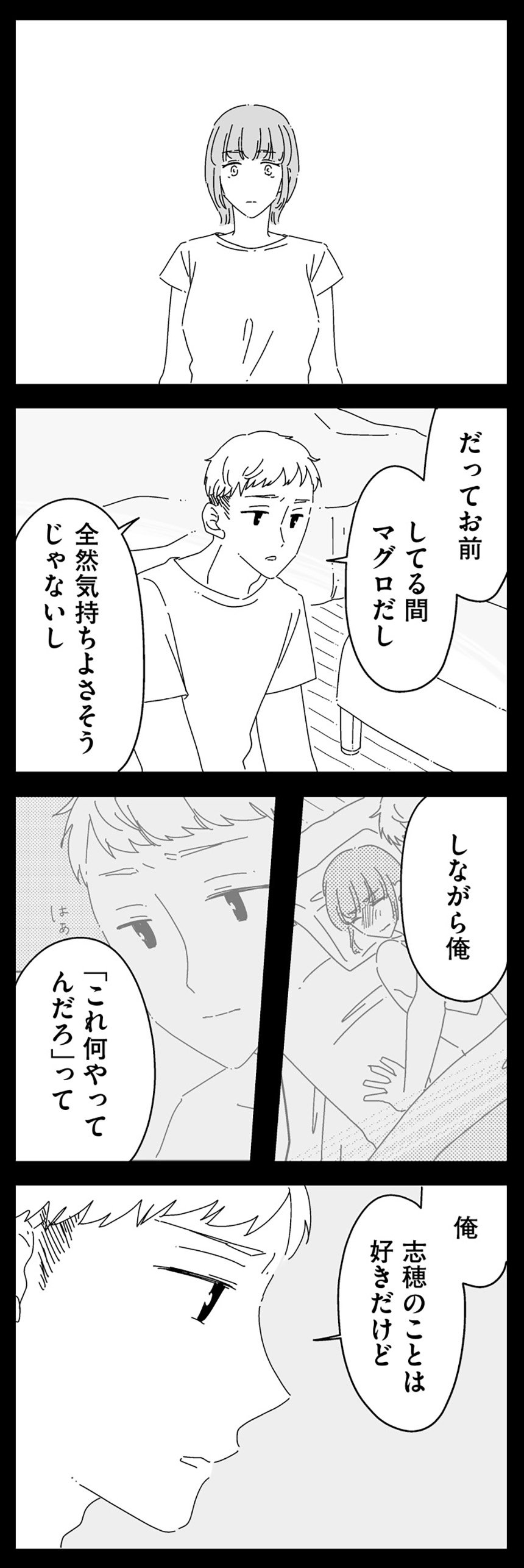 大学時代に初めてできた彼氏との初体験で感じた、強烈な痛みが原因でトラウマを抱える志穂。その彼氏に浮気されたことで、自分さえ我慢すれば上手くいくのだと痛みを隠すようになっていた。