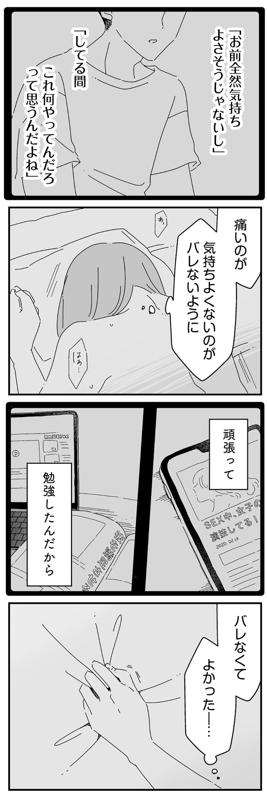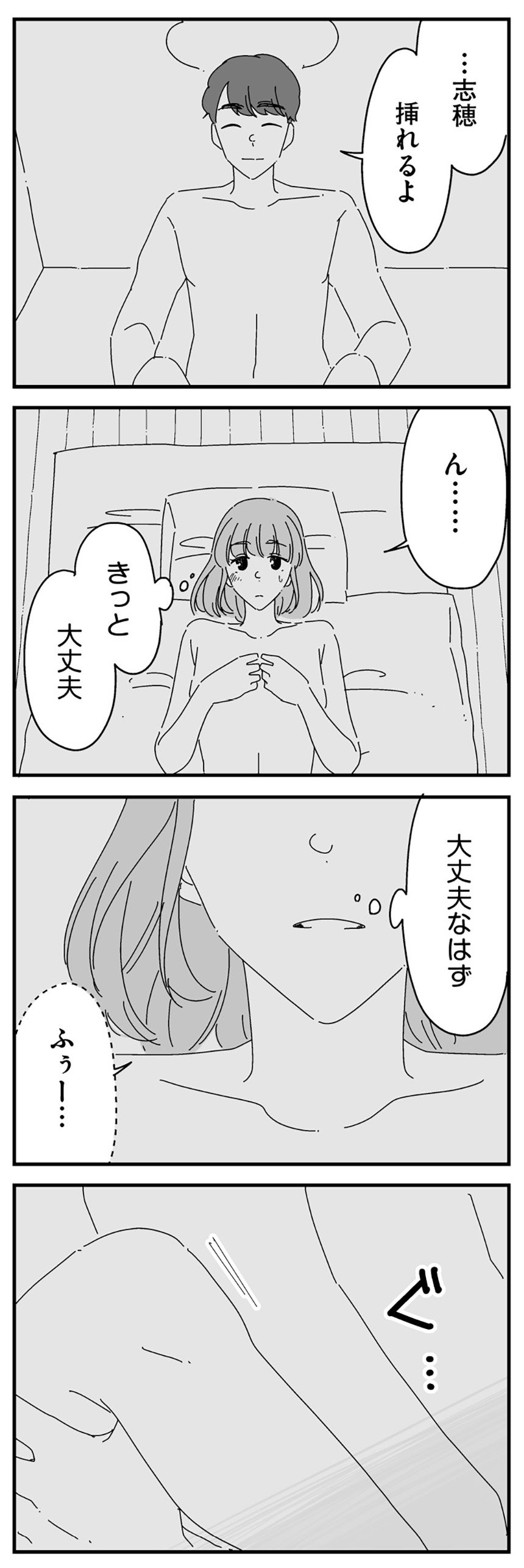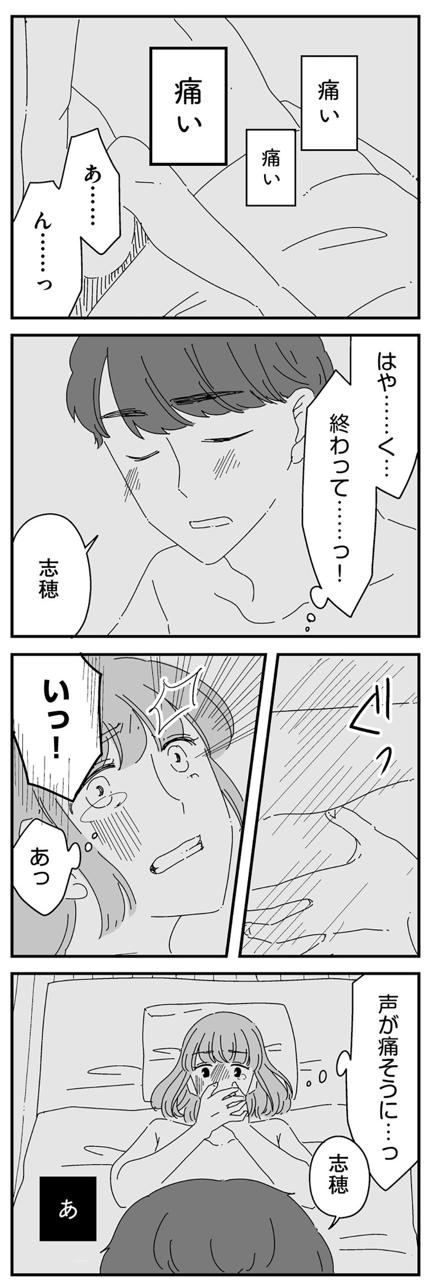 大学時代に初めてできた彼氏との初体験で感じた、強烈な痛みが原因でトラウマを抱える志穂。その彼氏に浮気されたことで、自分さえ我慢すれば上手くいくのだと痛みを隠すようになっていた。