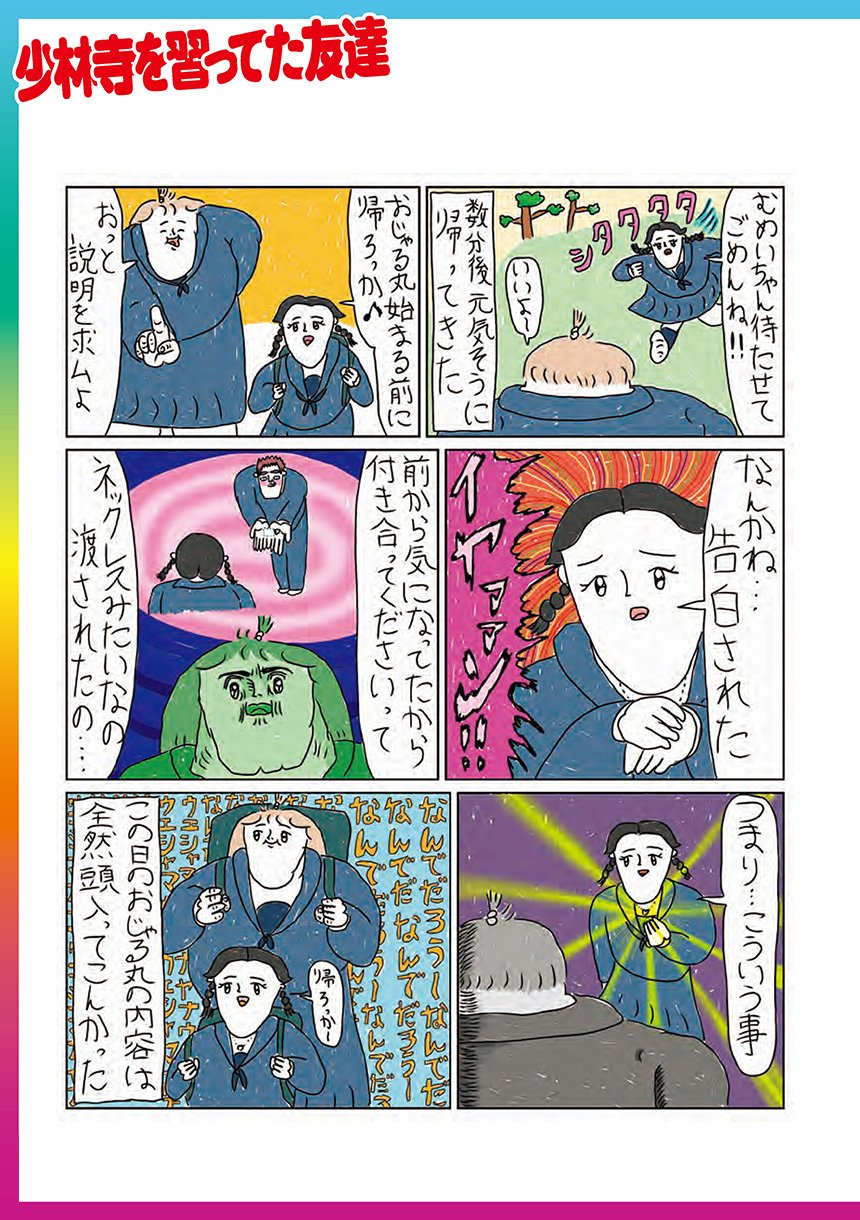 貧乏すぎてコップがすべてワンカップの空き瓶だった幼少時代、抜いても抜いても生えてくる福毛の話、ギガサイズ化した友達の金魚の話など、すべてどうでもいいのに泣くほど笑えて元気が出るエピソード満載。著者のつたない記憶とオリジナリティあふれる解釈で描いた「おむすびころりん」「ジャックと豆の木」など、「テキトーだけど泣くほど笑える! カッラフルなむっっかし話」も特別収録。疲れた心にぶっっ刺さる! いろんなことがどうでもよくなる全部実話のコミックエッセイ!!