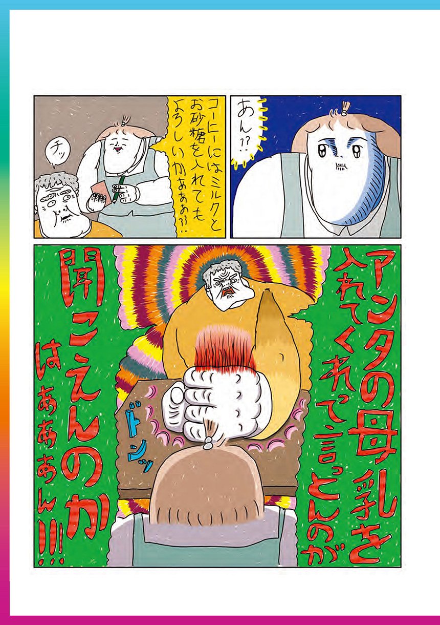 貧乏すぎてコップがすべてワンカップの空き瓶だった幼少時代、抜いても抜いても生えてくる福毛の話、ギガサイズ化した友達の金魚の話など、すべてどうでもいいのに泣くほど笑えて元気が出るエピソード満載。著者のつたない記憶とオリジナリティあふれる解釈で描いた「おむすびころりん」「ジャックと豆の木」など、「テキトーだけど泣くほど笑える! カッラフルなむっっかし話」も特別収録。疲れた心にぶっっ刺さる! いろんなことがどうでもよくなる全部実話のコミックエッセイ!!