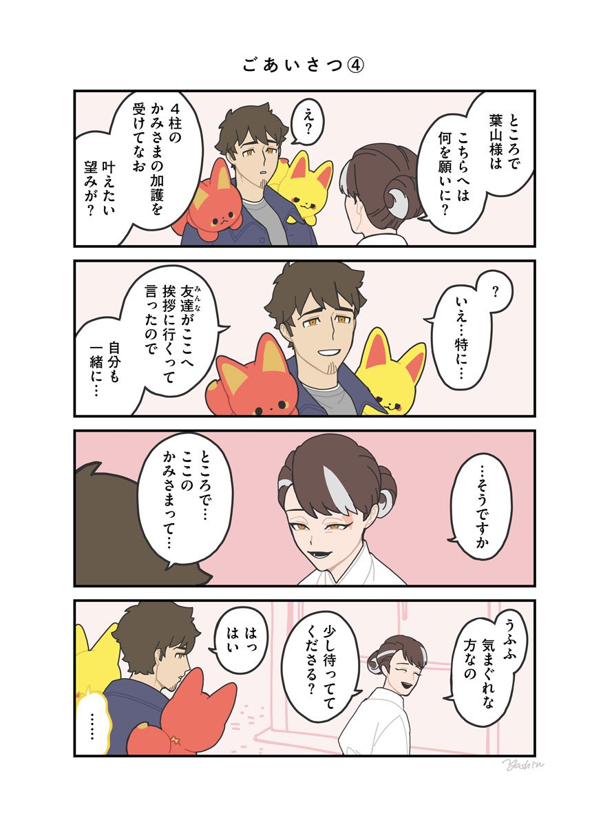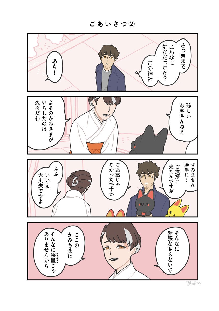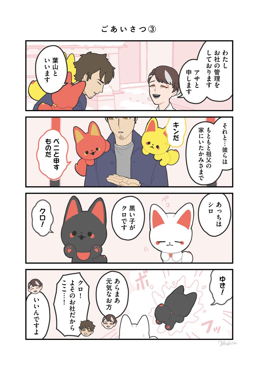 32歳サラリーマンのコタローは4柱のかみさまキツネたちと暮らしています。商売繁盛を司るおしゃべりなベニ、五穀豊穣を司る頑固なキン、悪疫退散を司る照れ屋なシロ、開運招福を司る幼げなクロと個性豊かなかみさまたちに加えて、最近は猫又のスミハチも家に遊びに来るようになりました。初詣から節分、お花見と季節の行事をかみさまたちと過ごしてく中で、また新しい人外たちとの出会いが訪れます。描き下ろしエピソードとしてスミハチの過去編を収録!