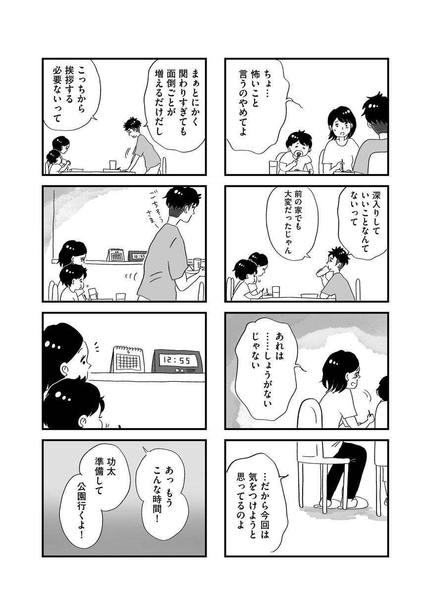 子どもの小学校入学を機に、とある郊外の住宅地に引っ越してきた平川家。1児の母である平川里奈は、近くに住むママ友や町内会の人たちと良好な関係を築き、おだやかな生活を送っていた。