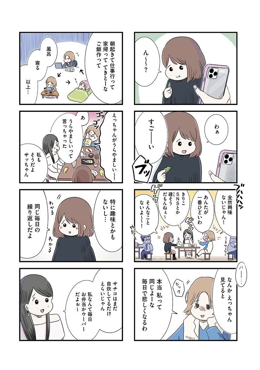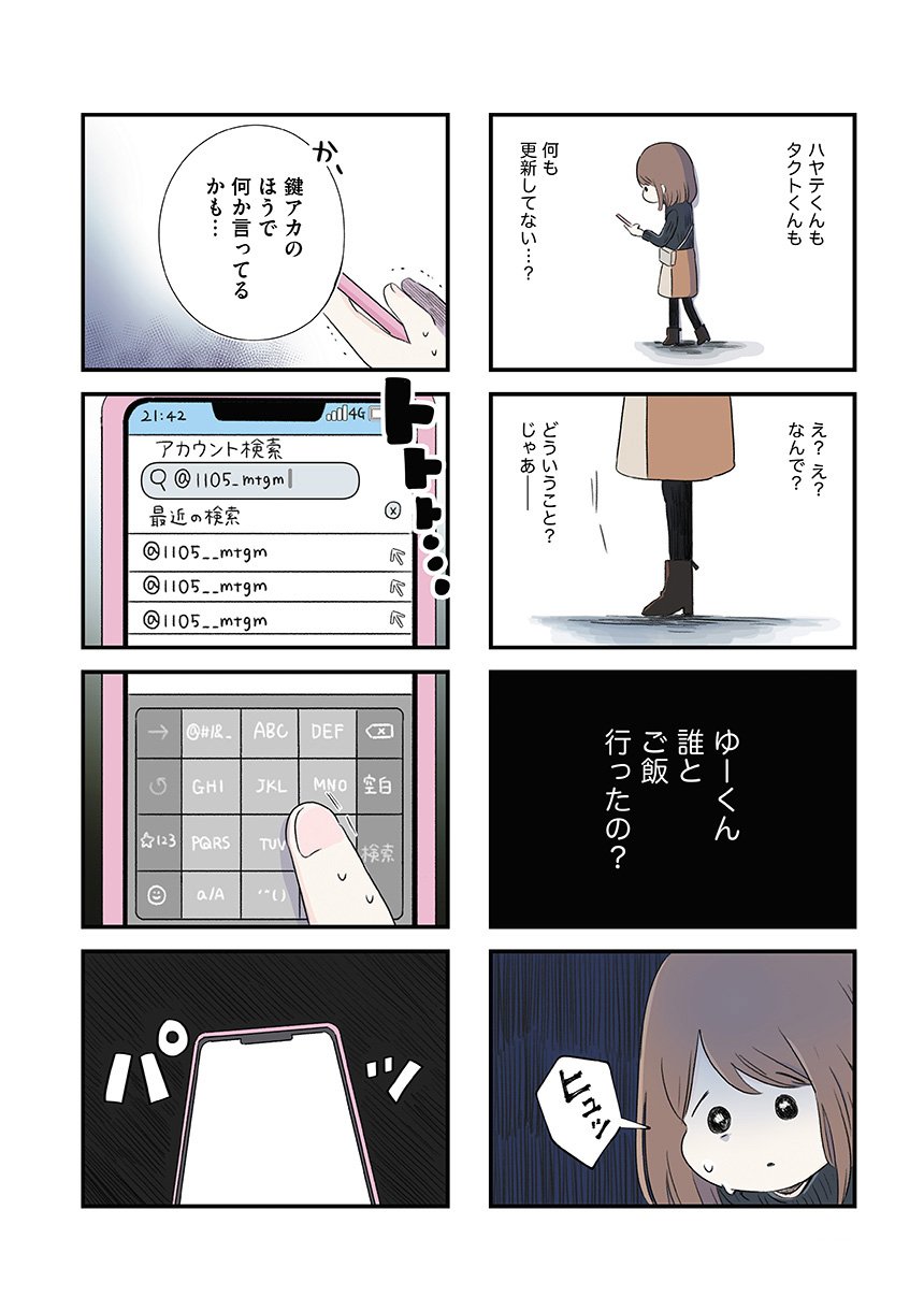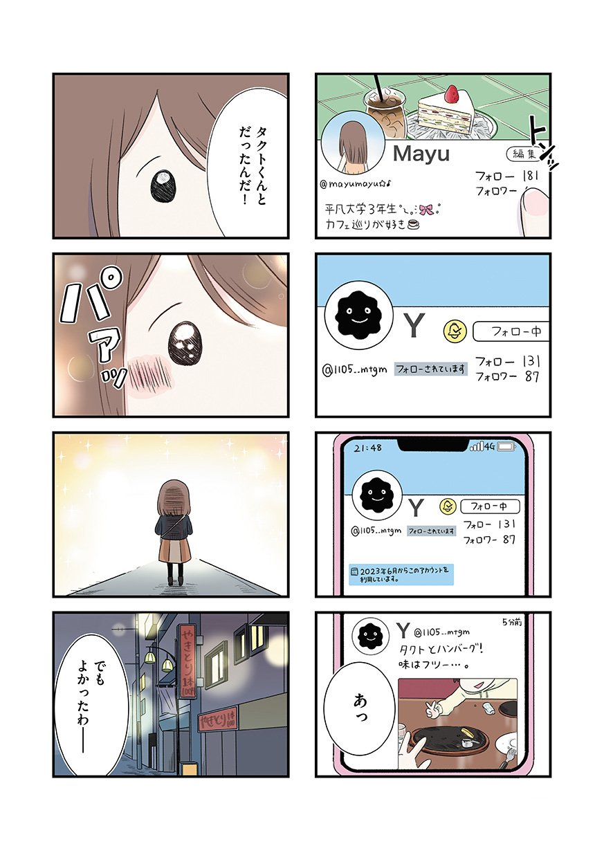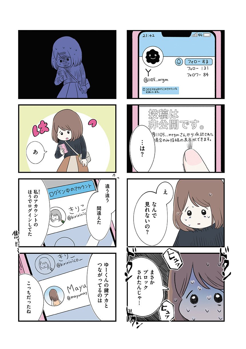 大学時代にできた初彼氏ゆうだいに別れを告げられて1年、きりこは彼への気持ちを手放せずにいた。それどころか、架空のなりすましアカウントを使ってゆうだいの裏アカをチェックするのが唯一の楽しみで、日々の些細な動向に一喜一憂する毎日を送っていた。そんななか、ひょんなことから再びゆうだいと連絡を取りはじめ、一緒にご飯に行くことに。「私たちなら、きっとまた元の関係に戻れる」そう信じて、美容に洋服、お店選びもばっちりで迎えた当日、ゆうだいから新しく気になる人ができたと告げられて……。