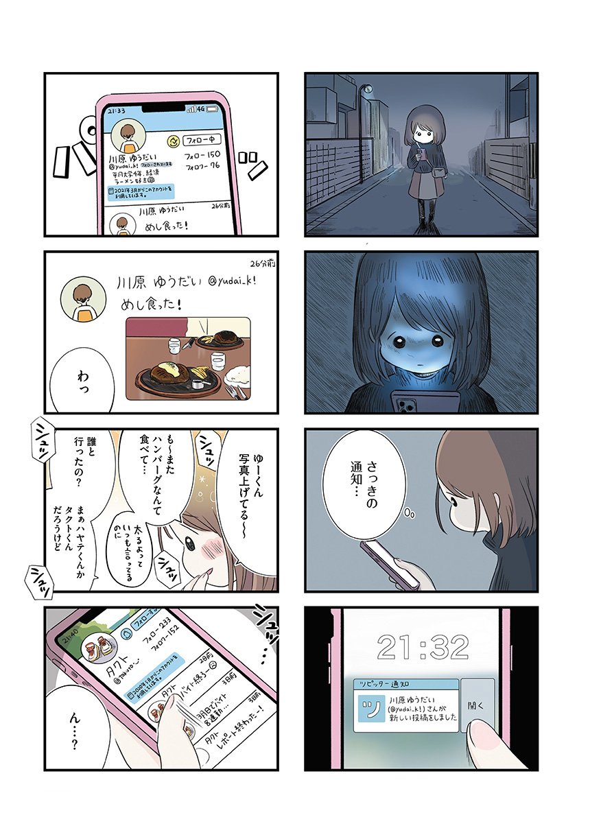 本当に好きな人にフラれたとき、あなたなら諦めることはできますか? 大学時代にできた初彼氏ゆうだいに別れを告げられて1年、きりこは彼を忘れるどころか、架空のなりすましアカウントを使って日々の動向をチェックする毎日を送っていた。そしてとうとう再会を果たしたゆうだいに告げられた一言は…。きりこの恋心は執着なのか、それとも――過剰な愛の先に待っていた、衝撃の結末!