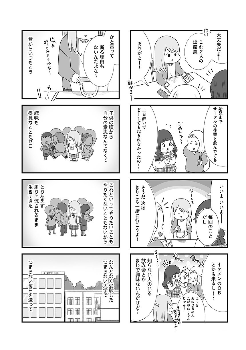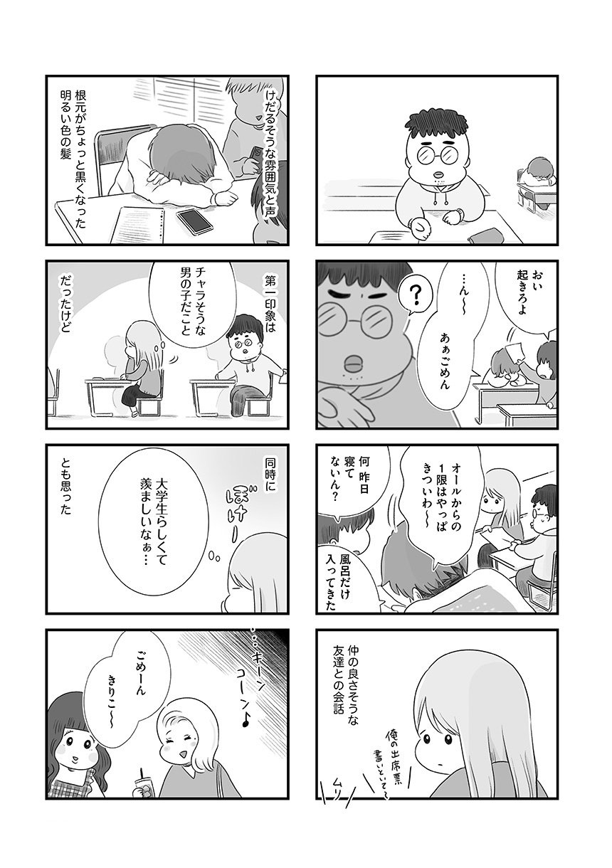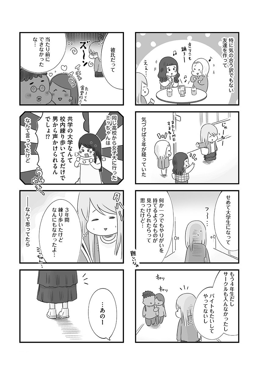 大学時代にできた初彼氏ゆうだいに別れを告げられて1年、きりこは彼への気持ちを手放せずにいた。それどころか、架空のなりすましアカウントを使ってゆうだいの裏アカをチェックするのが唯一の楽しみで、日々の些細な動向に一喜一憂する毎日を送っていた。そんななか、ひょんなことから再びゆうだいと連絡を取りはじめ、一緒にご飯に行くことに。「私たちなら、きっとまた元の関係に戻れる」そう信じて、美容に洋服、お店選びもばっちりで迎えた当日、ゆうだいから新しく気になる人ができたと告げられて……。
