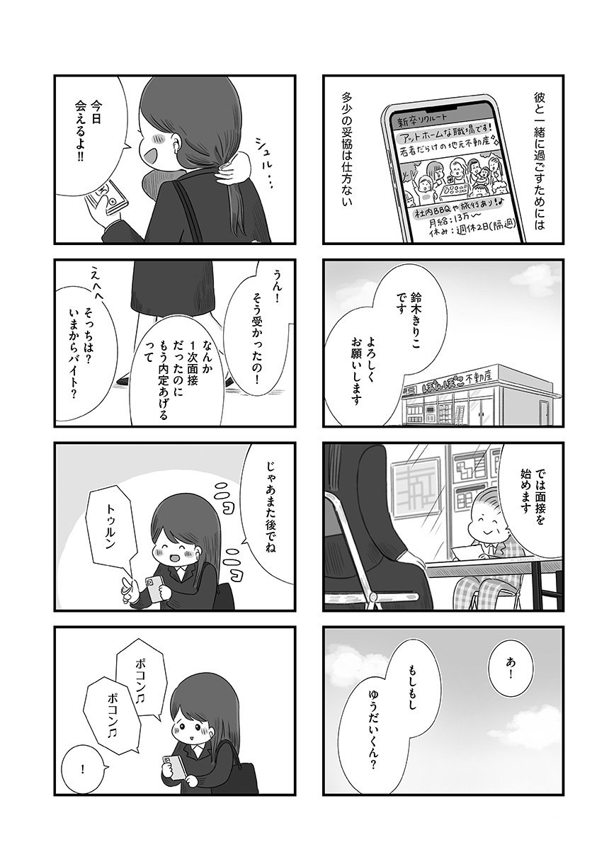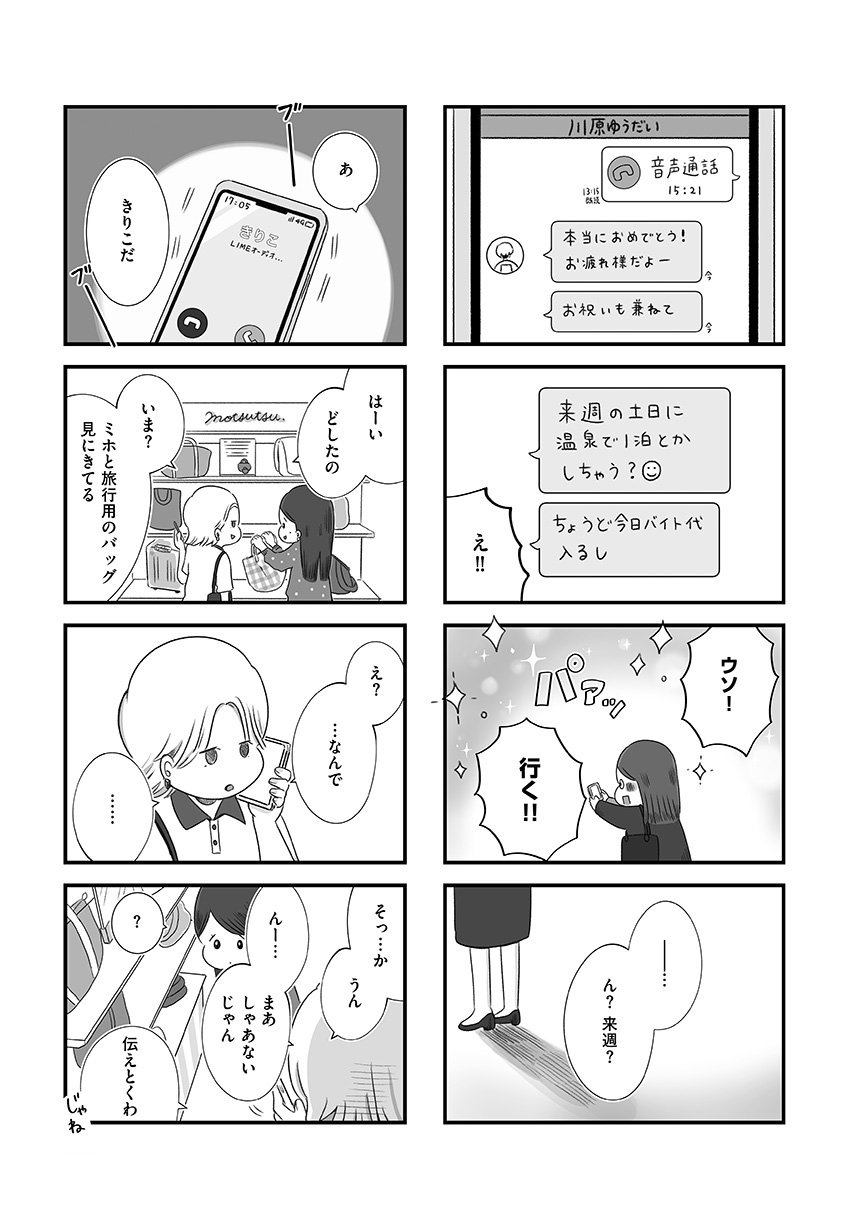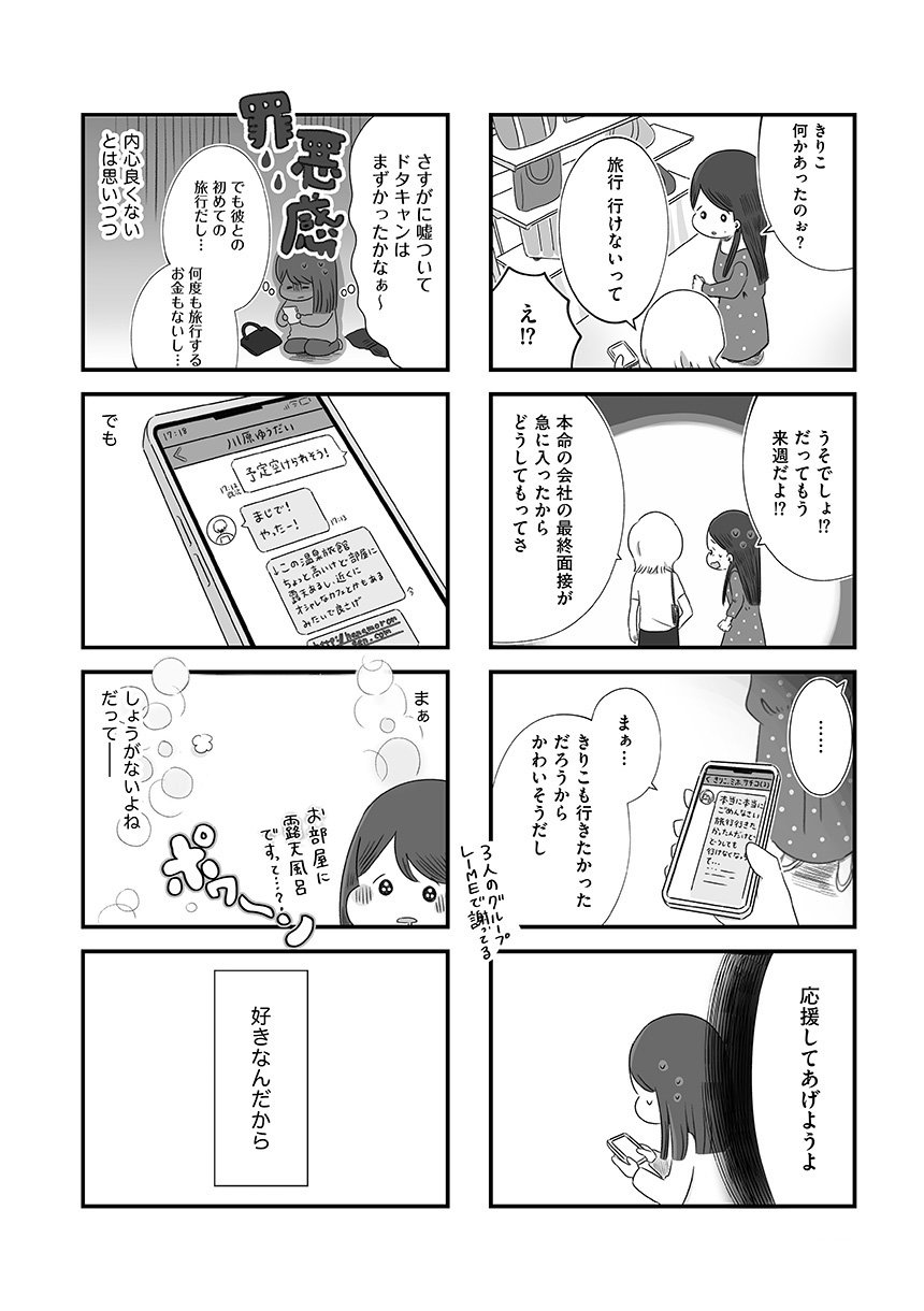 大学時代にできた初彼氏ゆうだいに別れを告げられて1年、きりこは彼への気持ちを手放せずにいた。それどころか、架空のなりすましアカウントを使ってゆうだいの裏アカをチェックするのが唯一の楽しみで、日々の些細な動向に一喜一憂する毎日を送っていた。そんななか、ひょんなことから再びゆうだいと連絡を取りはじめ、一緒にご飯に行くことに。「私たちなら、きっとまた元の関係に戻れる」そう信じて、美容に洋服、お店選びもばっちりで迎えた当日、ゆうだいから新しく気になる人ができたと告げられて……。