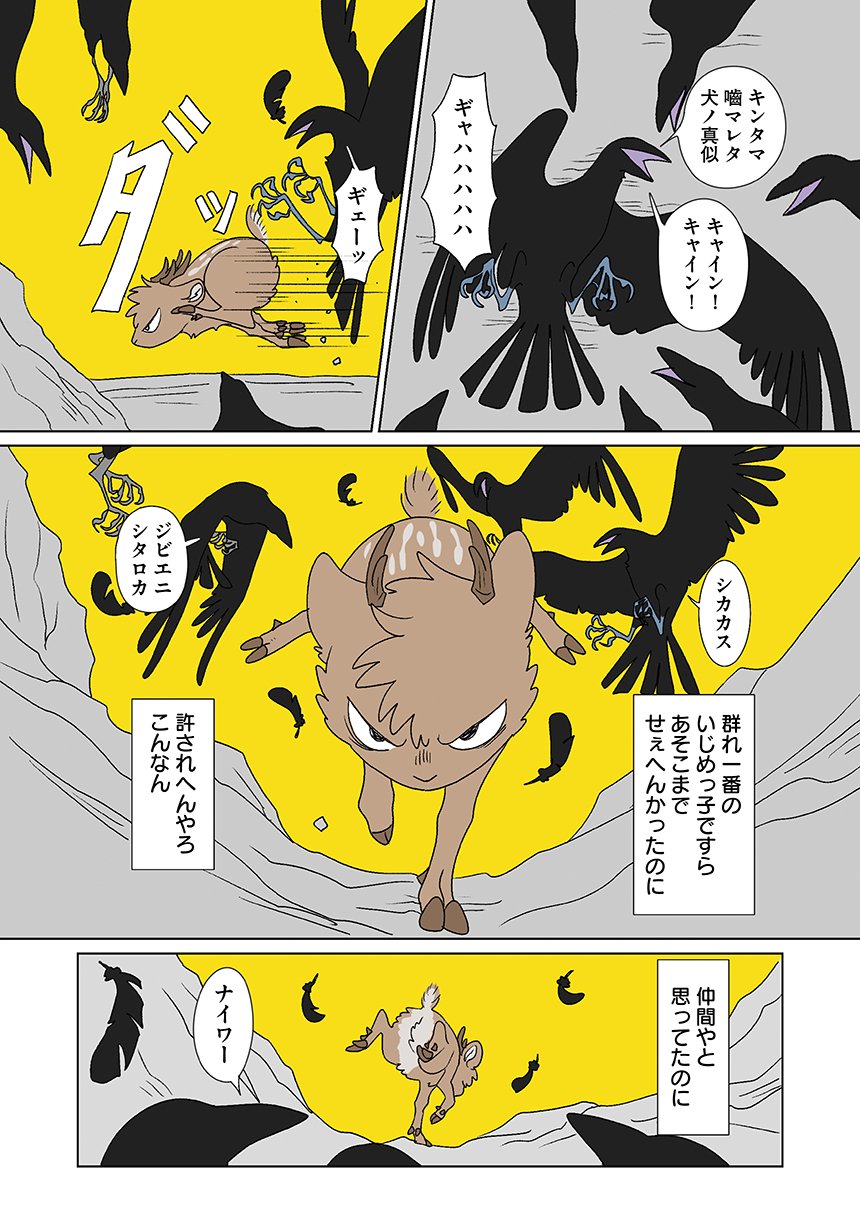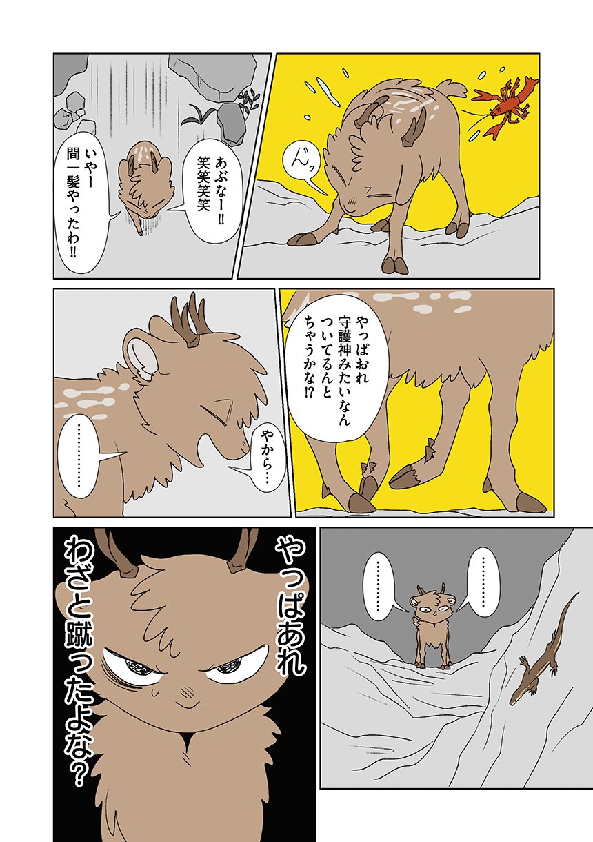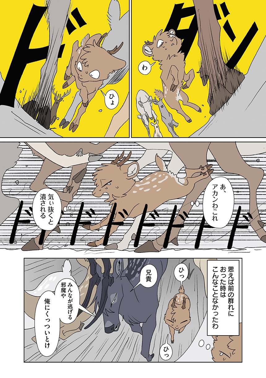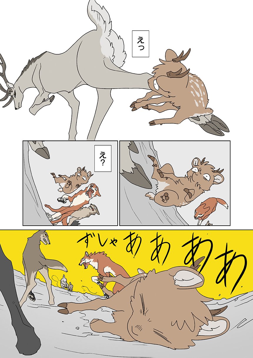 群れを追い出されたシカ・しのさきは、森で命を落としかけた瞬間、通りがかったオオカミ・みなせに救われる。
