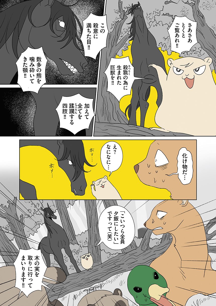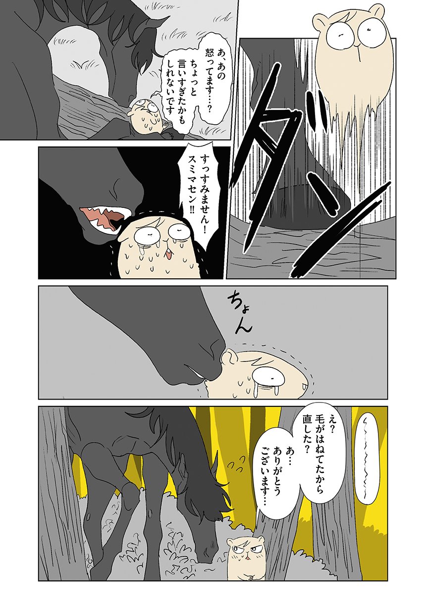 群れを追い出されたシカ・しのさきは、森で命を落としかけた瞬間、通りがかったオオカミ・みなせに救われる。
