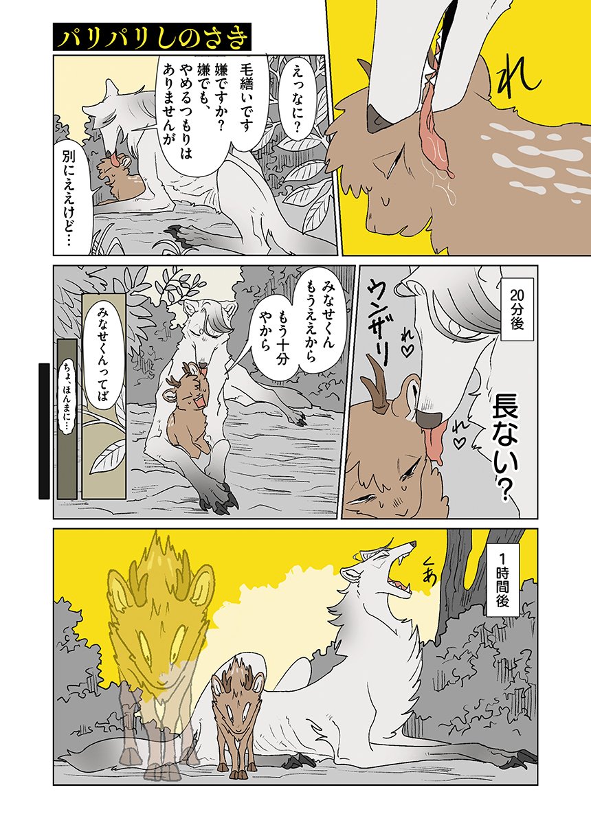 群れを追い出されたシカ・しのさきは、森で命を落としかけた瞬間、通りがかったオオカミ・みなせに救われる。
