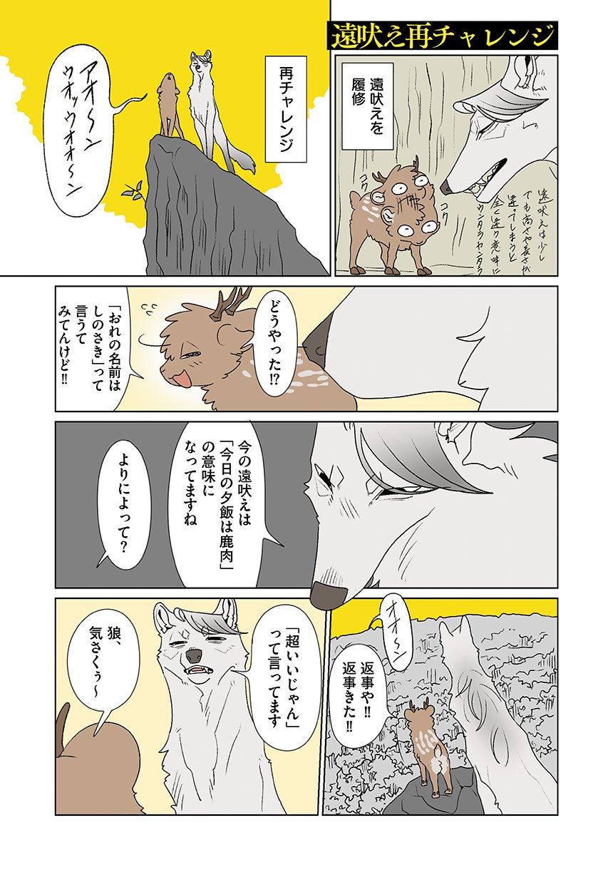 群れを追い出されたシカ・しのさきは、森で命を落としかけた瞬間、通りがかったオオカミ・みなせに救われる。